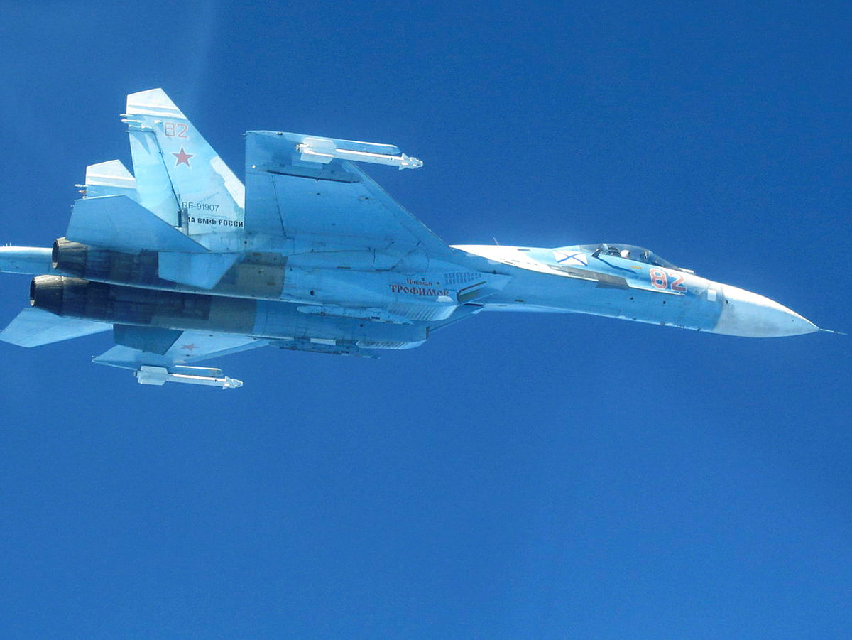 Footage of a Russian Su-35S Flanker that reportedly violated coalition airspace in Syria in April 2023, before being intercepted by U.S. Air Force fighters: