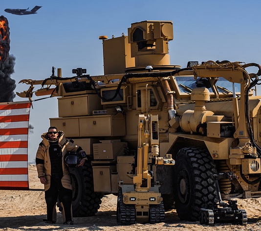 There are also four remote-controlled robots pictured that enable the EOD techs to detect and disarm explosives at a standoff distance.