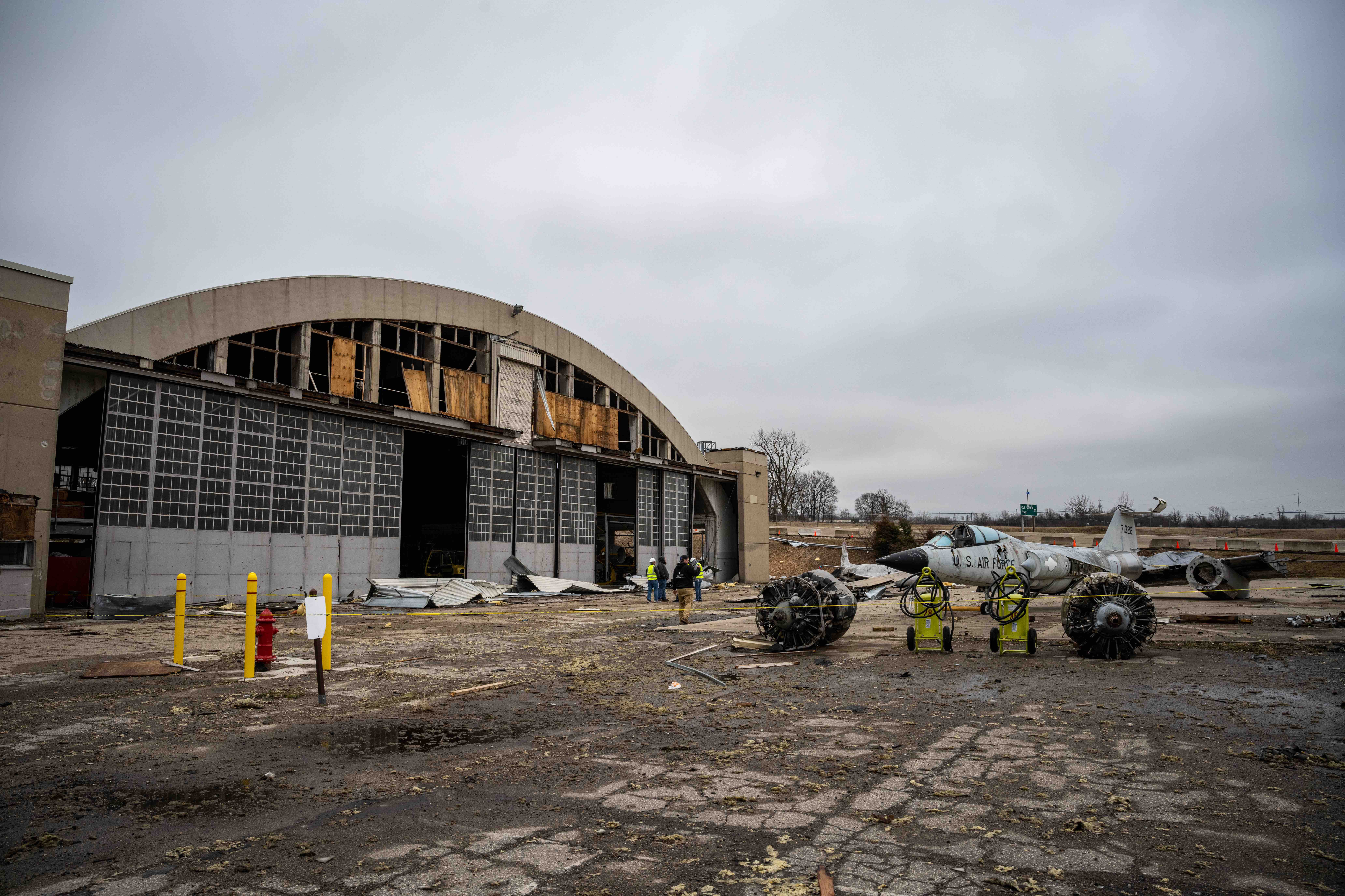 “The National Museum of the U.S. Air Force’s Restoration Hangar 4, Gate 22B (I-675 Gate) and several other buildings on Area B of Wright-Patterson Air Force Base sustained damage after a suspected early-morning tornado touched down Feb. 28…. The 88th Civil Engineer Group, first responders and base safety personnel are assessing damage throughout the base.”