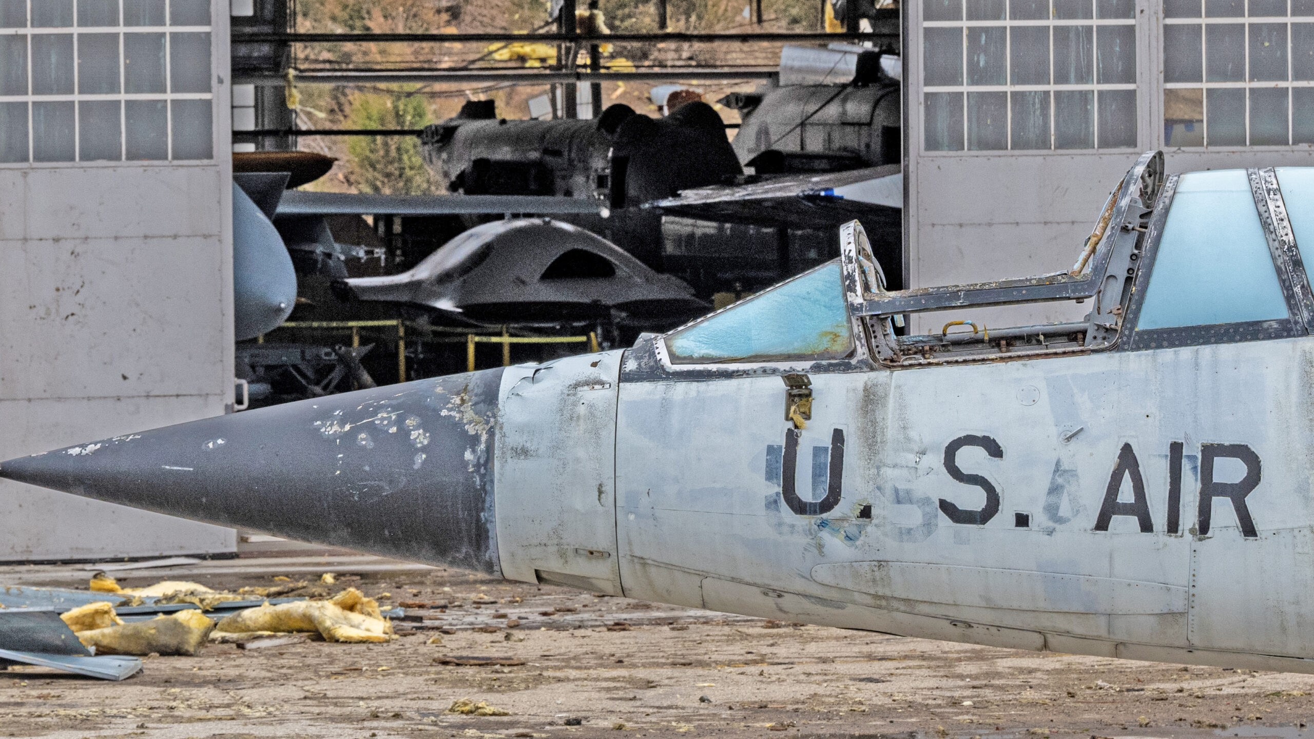 Imagery of the devastation released by Wright-Patterson certainly makes for grim viewing. In the photos, we see various parts of aircraft strewn across the apron in front of the museum’s Restoration Hangar 4, which sustained significant damage.