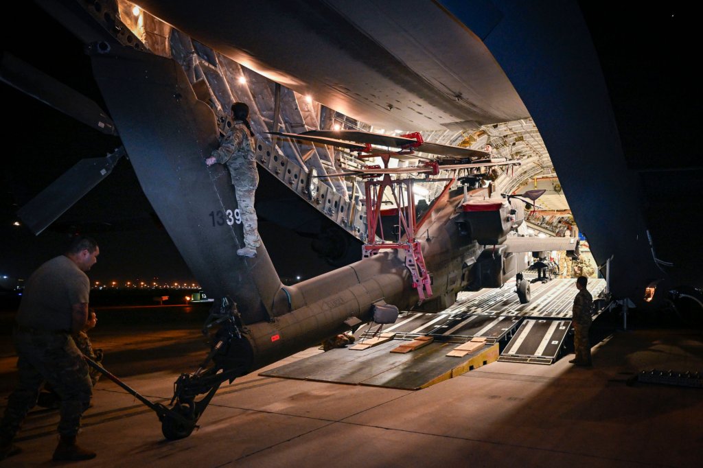 The U.S. Air Force had previously released pictures showing a C-17A Globemaster III cargo plane delivering AH-64s from the 101st Airborne Division’s 101st Combat Aviation Brigade to an undisclosed location in the Middle East last month.