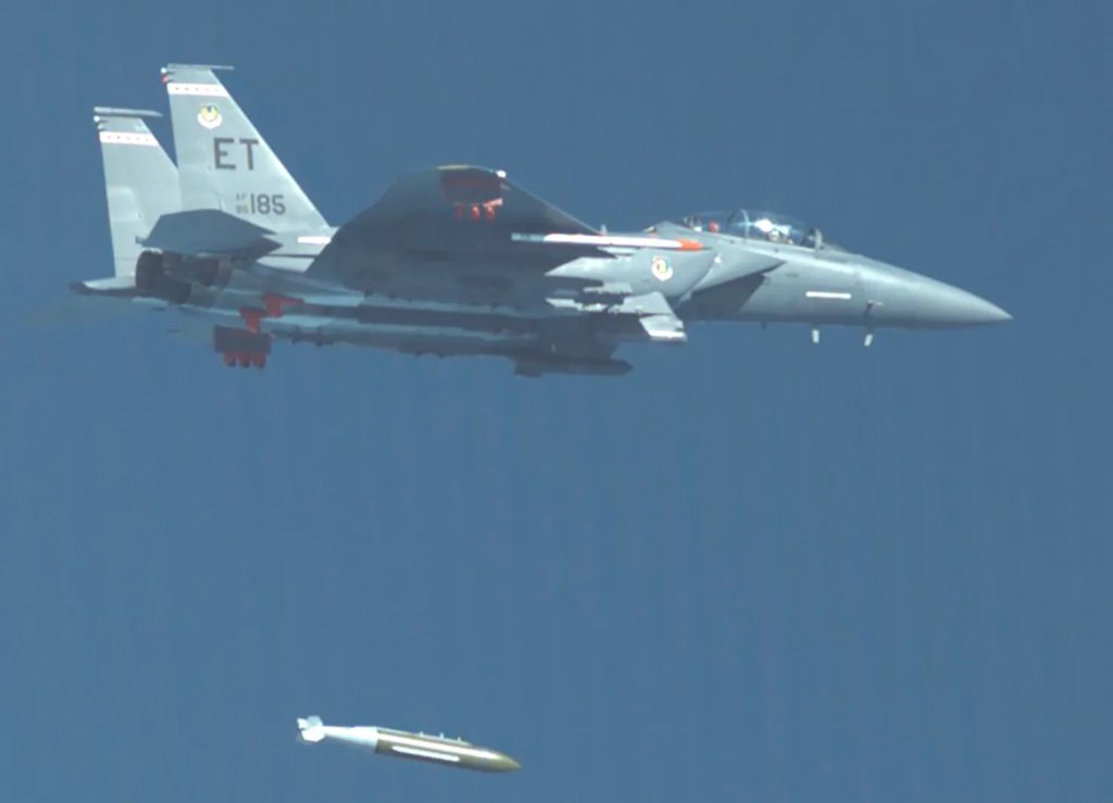What aircraft are currently cleared to employ the GBU-72/B operationally is also not clear. In 2021, the Air Force announced the successful release of an A5K from an F-15E Strike Eagle in testing. In 2024, pictures emerged of a B-1 bomber carrying one of the bombs on an external pylon under the forward fuselage in another apparent test. The Air Force has also raised the possibility of integrating the GBU-72/B onto the B-2 bomber in the past. F-15Es, B-1s, and B-2s are among the aircraft the U.S. military has been using to carry out strikes on targets in Iran.