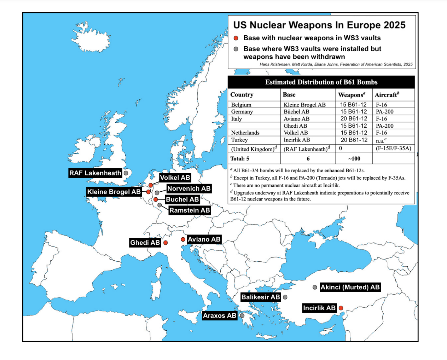 FAS notes that, as of February 2025, “there are no known public indications that nuclear weapons have been deployed to RAF Lakenheath,” although the writers of the report consider the U.S. Air Force “is re-establishing its nuclear mission on U.K. soil for the first time in nearly two decades.”