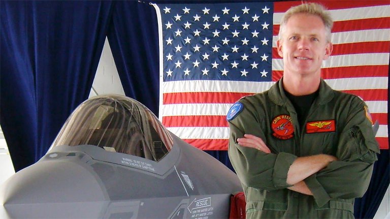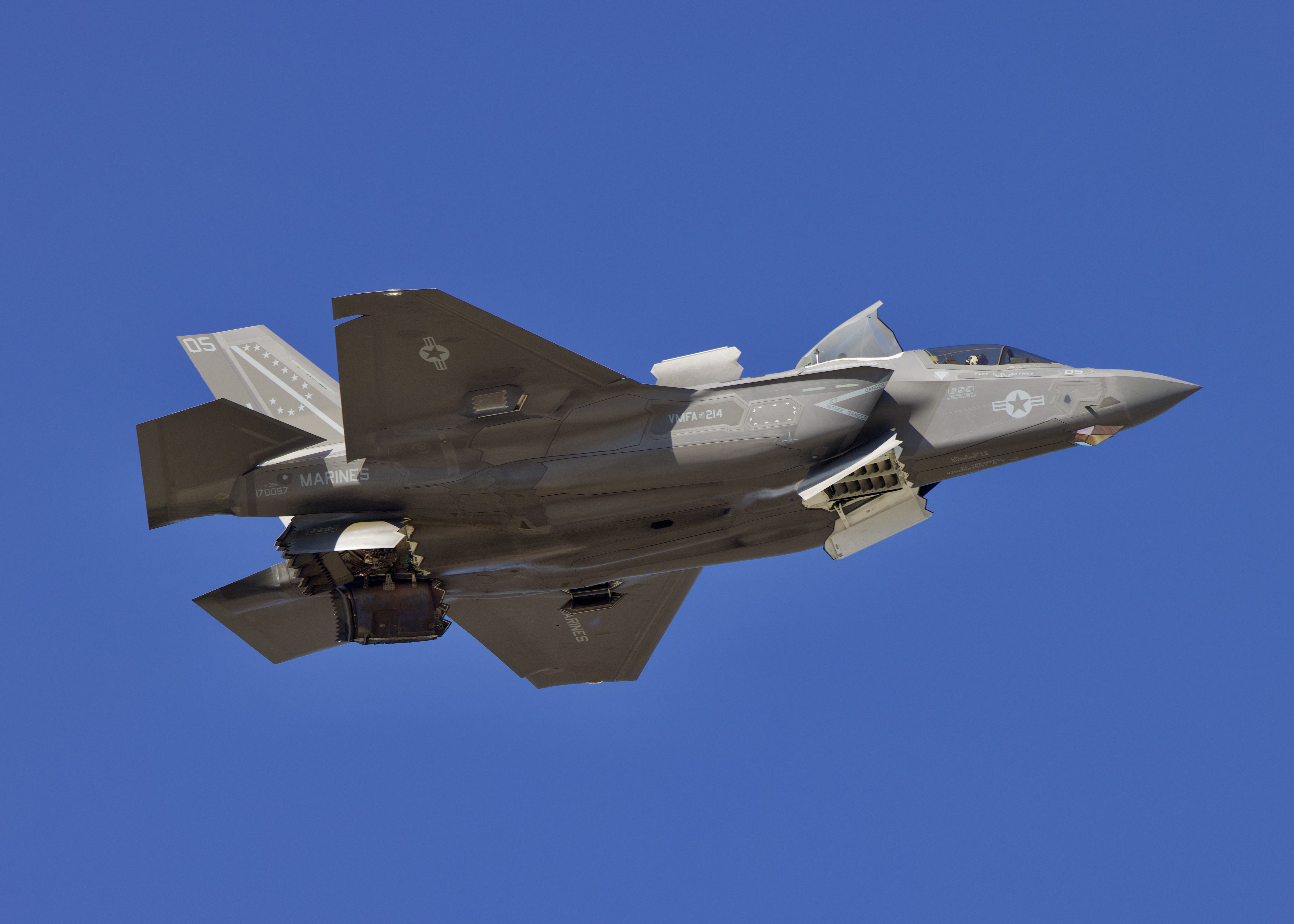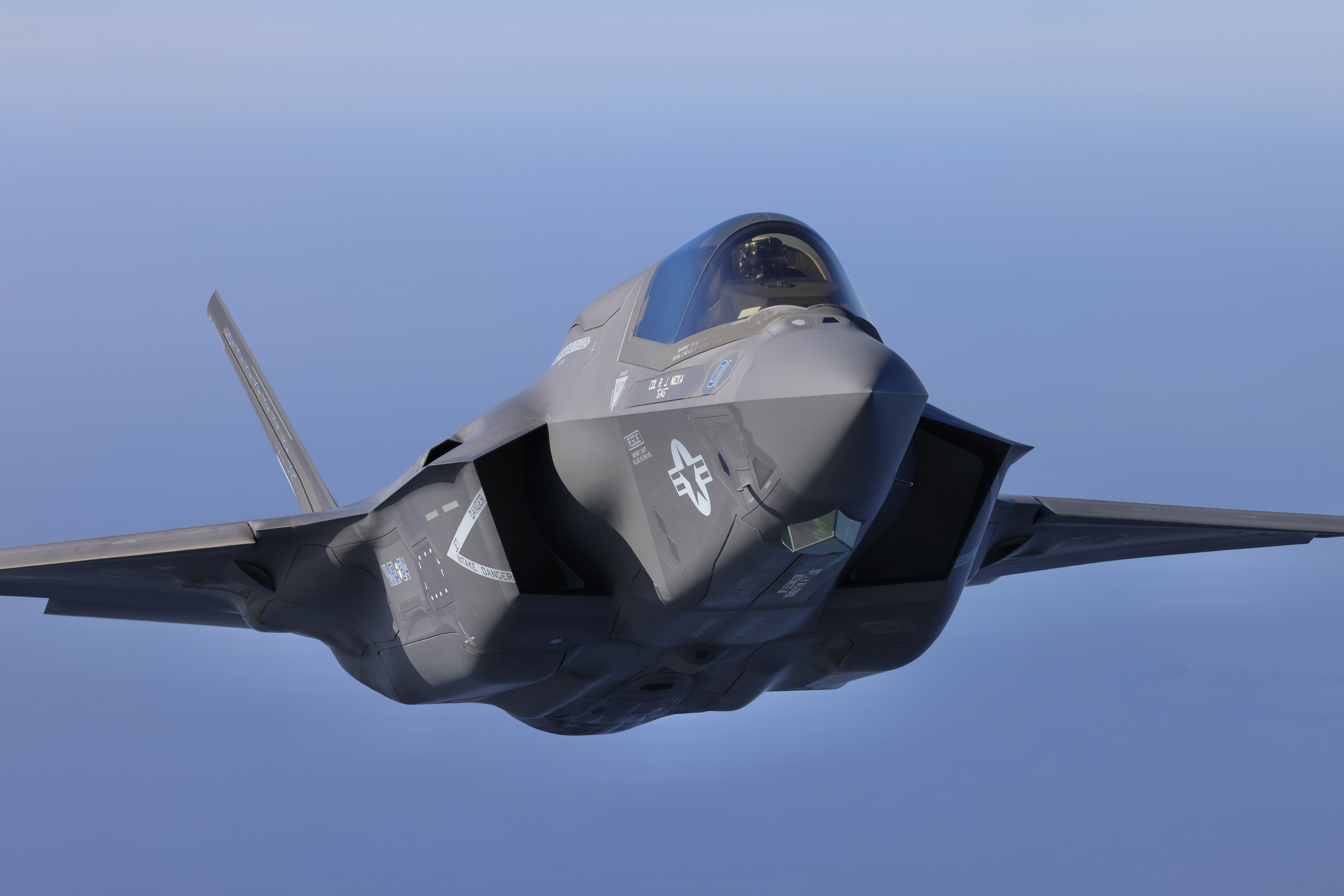 “For the mission we executed short takeoffs as a four ship after waiting for the wake turbulence of the C-17s to subside. We executed a pre-mission hit to top off our gas and got in the escort mindset to get the C-17s to a release point to where the C-17s could provide an aerial replenishment to a nuclear submarine. We joined up with five other F-35s from Yuma for a total of nine plus four F/A-18s. We went up against four F-35Cs, two Kfirs, two Learjets and four Hawker Hunters. It was a robust red air picture. We gave the C-17s a hard time on target to make it more difficult for mission planning. We attempted to set conditions to enable the C-17s to get to the release pilot without getting shot down. The C-17 is a strategic target so we provided escort. It was great having F-35Cs on the opposing side because it shows you what the threat is we’re going up against. The Learjets had jamming pods which made it more difficult and added a layer of complexity. Once the C-17s were in an acceptable level of risk to complete their mission, they went in.”
