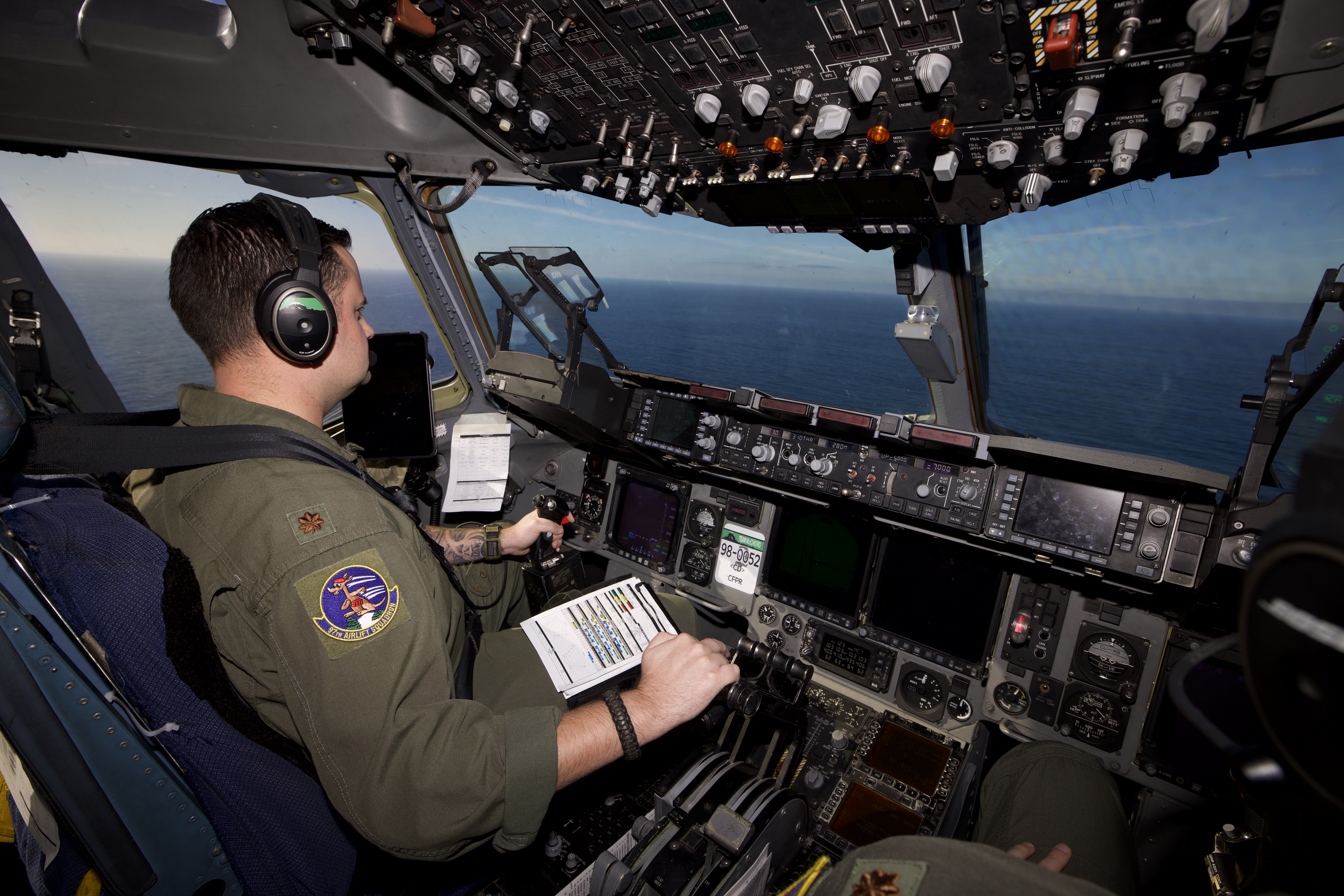 Without a viable datalink that can connect with the F-35s, C-17 crews are forced to use other methods to stay on task. “We are literally using a piece of paper and a pencil with a bullseye chart and tracking where we are and where red air is based on specific criteria in order to maintain the risk that we are set to. Most of the defense of the C-17 is accomplished in the mission planning cell where we produce contracts that VMFA-214 have to execute in order to keep us safe. We are highly dependent on our escort or the tactical command and control function as we listen to radios and use paper. It is hard to do and requires a high level of aircrew training.”