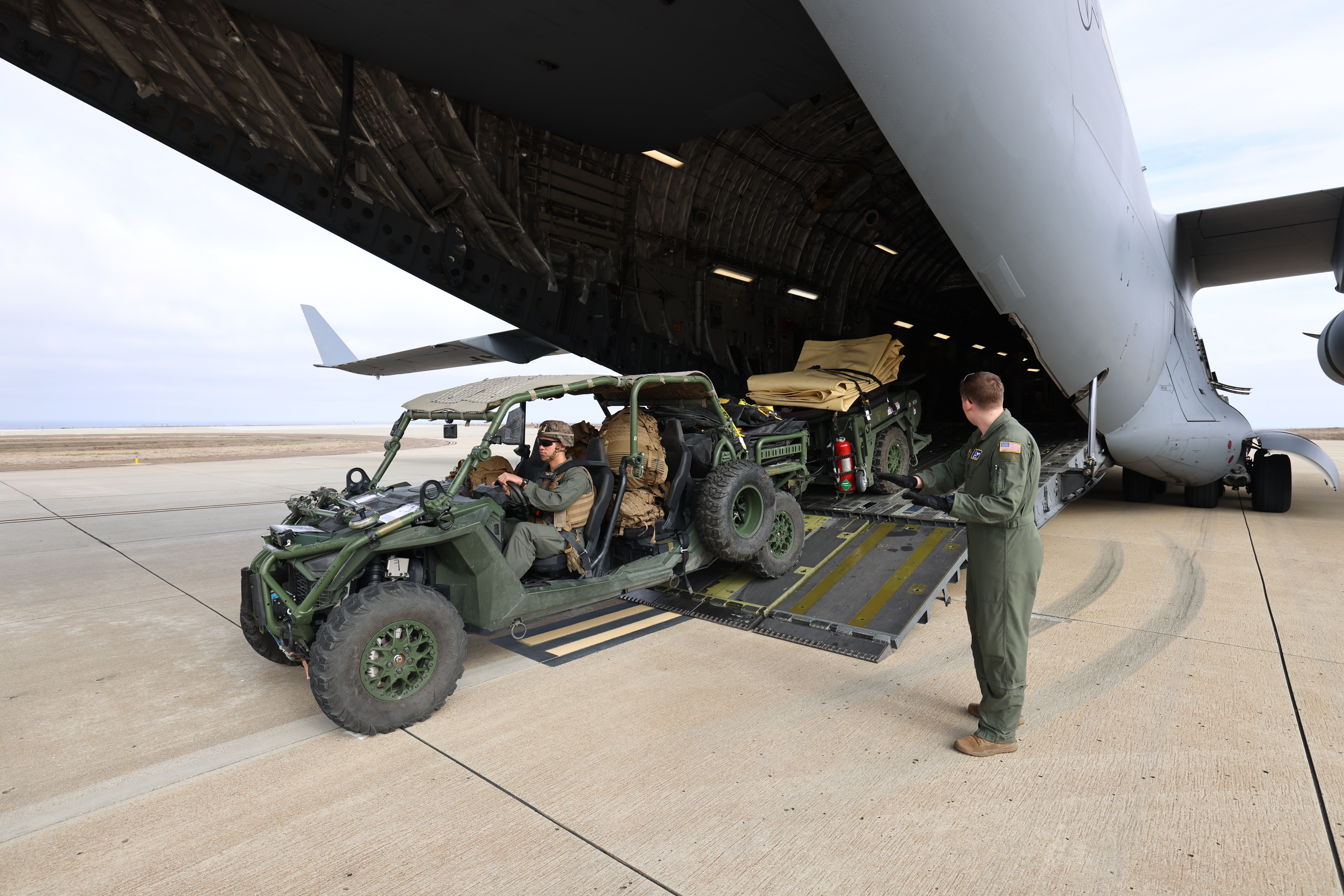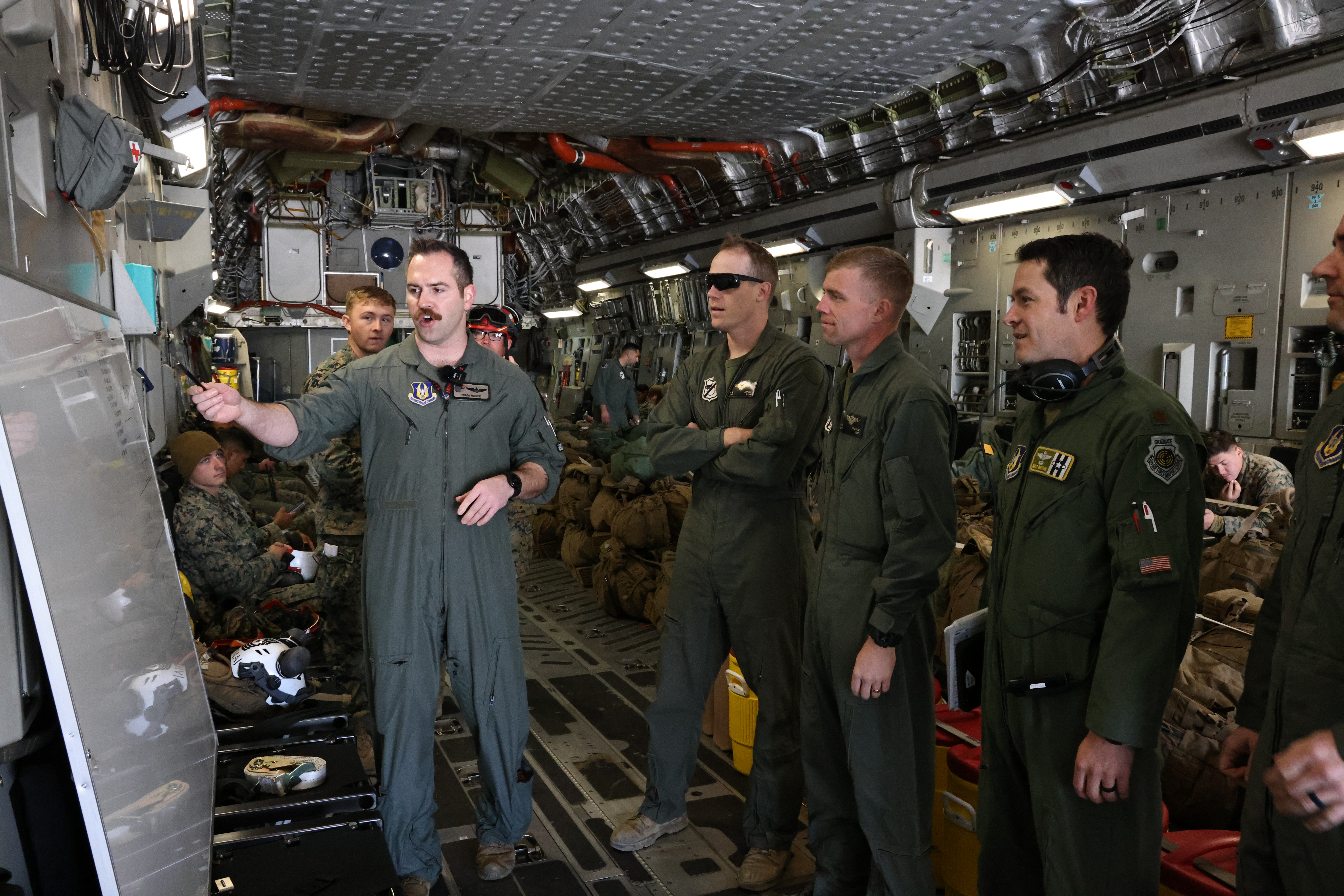 “It’s somewhat non-standard for Marine tactical aviation to work this closely with the C-17, but we have a great relationship with the reserve unit, the 97th, the ‘Fightin Roos’ out of Joint Base Lewis-McChord up in Washington. It started about a year and a half ago. We’ve got some Marines that used to fly with us that are now reservists with the 97th. And so that’s how the relationship started,” Guyette explained. “We started doing detachments out of New Orleans and other places like that to achieve mutual training objectives. There’s a lot of things that we can’t do that they can do and vice-versa, so it’s a symbiotic relationship between the two of us.”