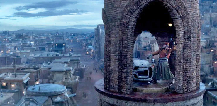 Yet there is no world-building as rich as the blue-collar planet of Ferrix. They built a good part of the fictional city shown for the production. Apparently, the set covered many acres and it shows. But it’s not just the incredible sets that bring Ferrix to life. Strongly influenced by coal mining and other grimy industrial towns of decades past, over the 12-episode run, this polluted, brick-covered, worn-out city that seems at first like a terrible place to be, slowly emerges as a very unique locale with a proud culture and strong community bonds. We are talking next-level world-building here. Tiring to even think about what went into every detail to result in such a complete concept that translates perfectly on camera and scales with the complex storyline.
