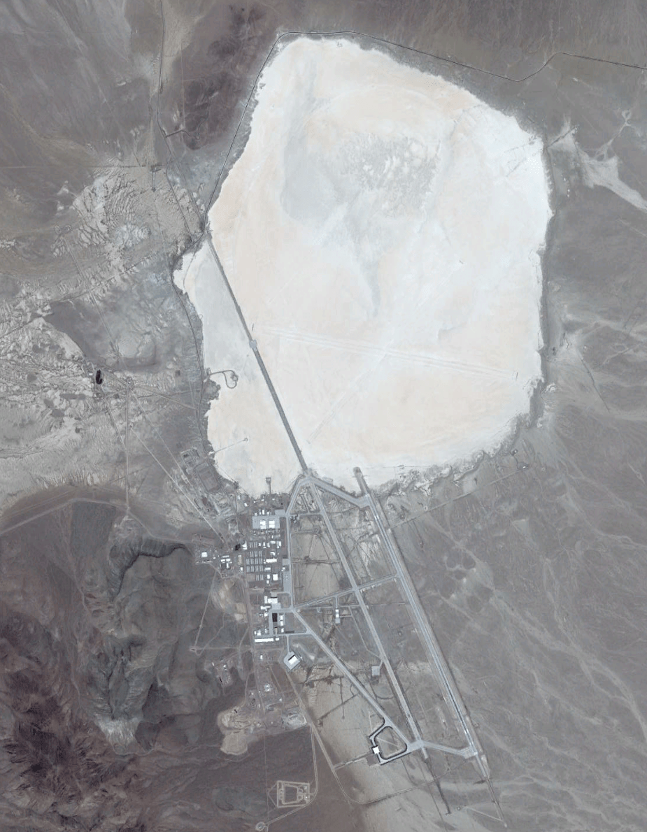 The decision was subsequently made to have Schultz attempt a touch-and-go on the dry lakebed located a the northern end of the facility to test the landing gear. “This maneuver may not have been the schoolhouse solution, but it would have allowed him to see whether gear was actually locked down, and it could have saved an important national asset,” Davies notes. “Choosing a lakebed would also keep Area 51’s main runway clear for the recovery of other assets that were airborne at the time.”