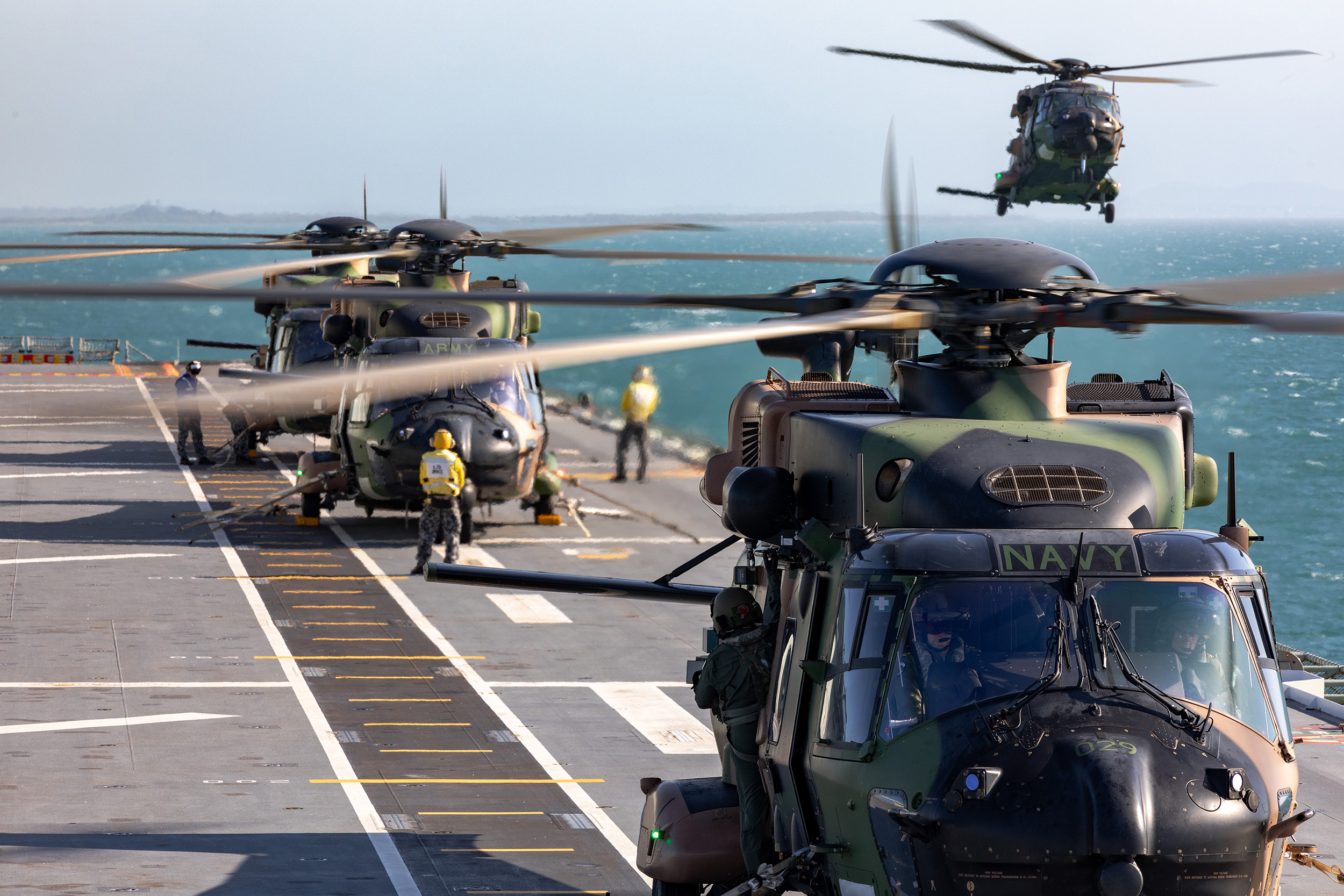The Royal Australian Navy, whose 808 Squadron was flying six NH90s in the naval logistics role embarked on Australia’s Supply class auxiliary replenishment tankers and Canberra class amphibious assault ships, was the first Australian service to lose patience with its NH90s.