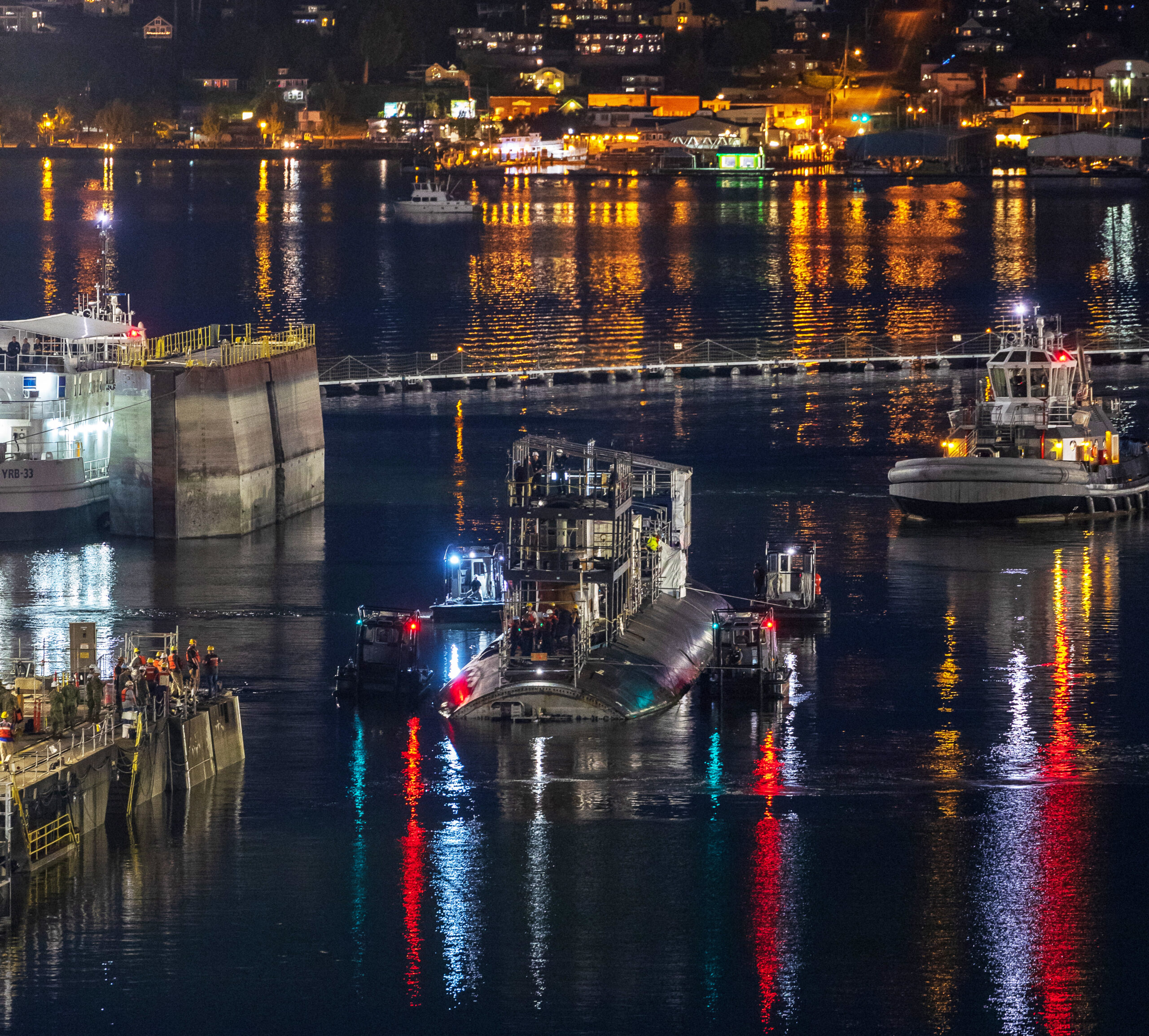 Complicating the submarine’s repair is an ongoing saga of badly needed seismic upgrades to the drydock facilities at the Puget Sound Naval Shipyard and Intermediate Maintenance Facility (PSNS & IMF) and at the nearby Trident Refit Facility in Bangor, Washington.