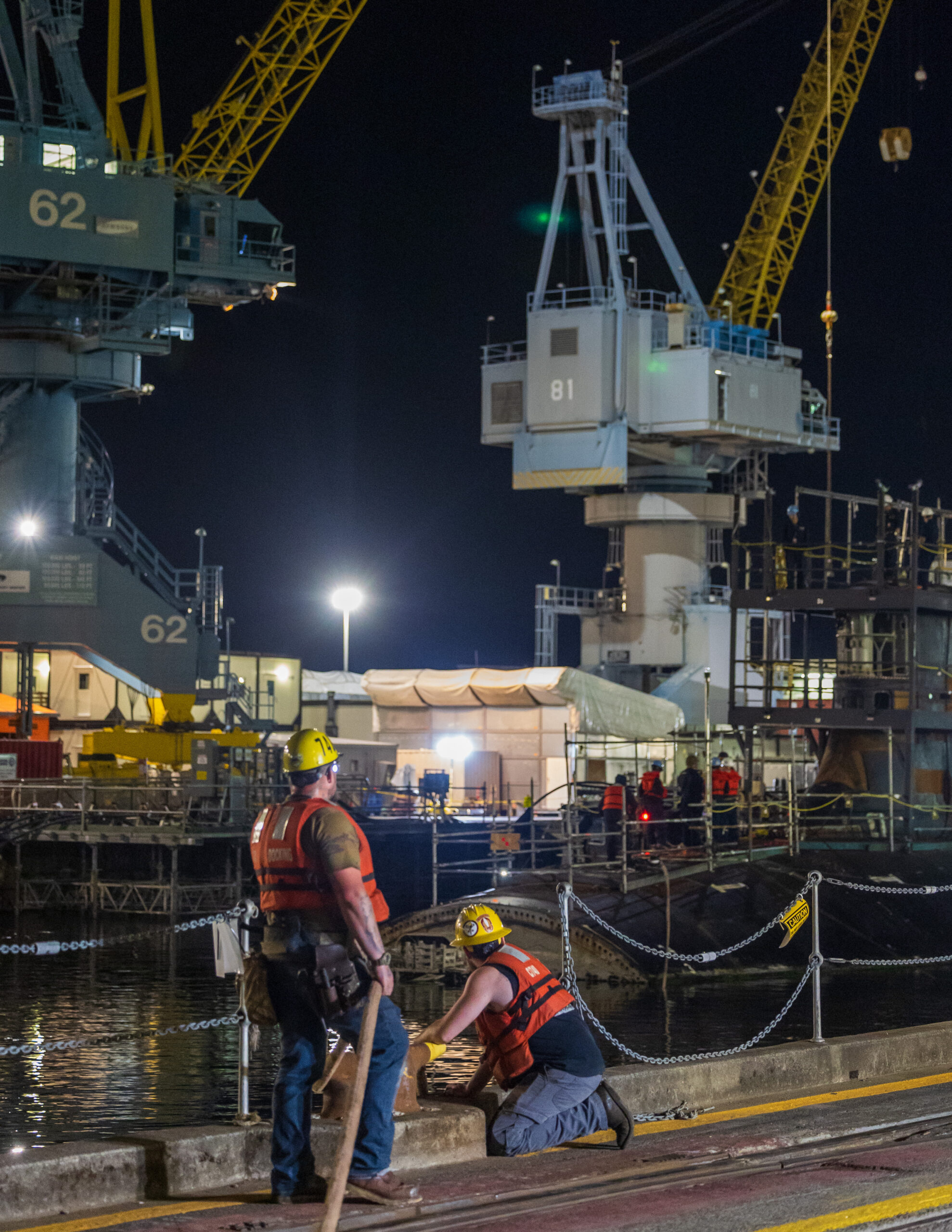“Construction efforts include drilling holes for the installation of anchors inside the dry dock walls to enhance structural integrity and ensure the safety of the workforce, community, environment, and submarines. The mitigation efforts updated existing emergency response plans to better address the chance of a catastrophic earthquake, along with improved early-warning employee notification systems in the dry docks.