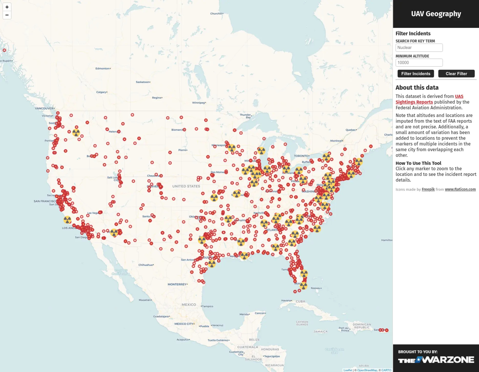 As many recent events have shown, there is a clear need for new legislation. The FAA has recorded approximately 10,000 drone-related incidents in the past five years alone, which we actually cataloged into an interactive database. Our database, which contains data similar to what the White House is proposing to gather, contains information such as the location and approximate altitude of UAS incidents, the locations of active nuclear reactors in the United States, and permits searching the FAA’s incident reports by keyword.