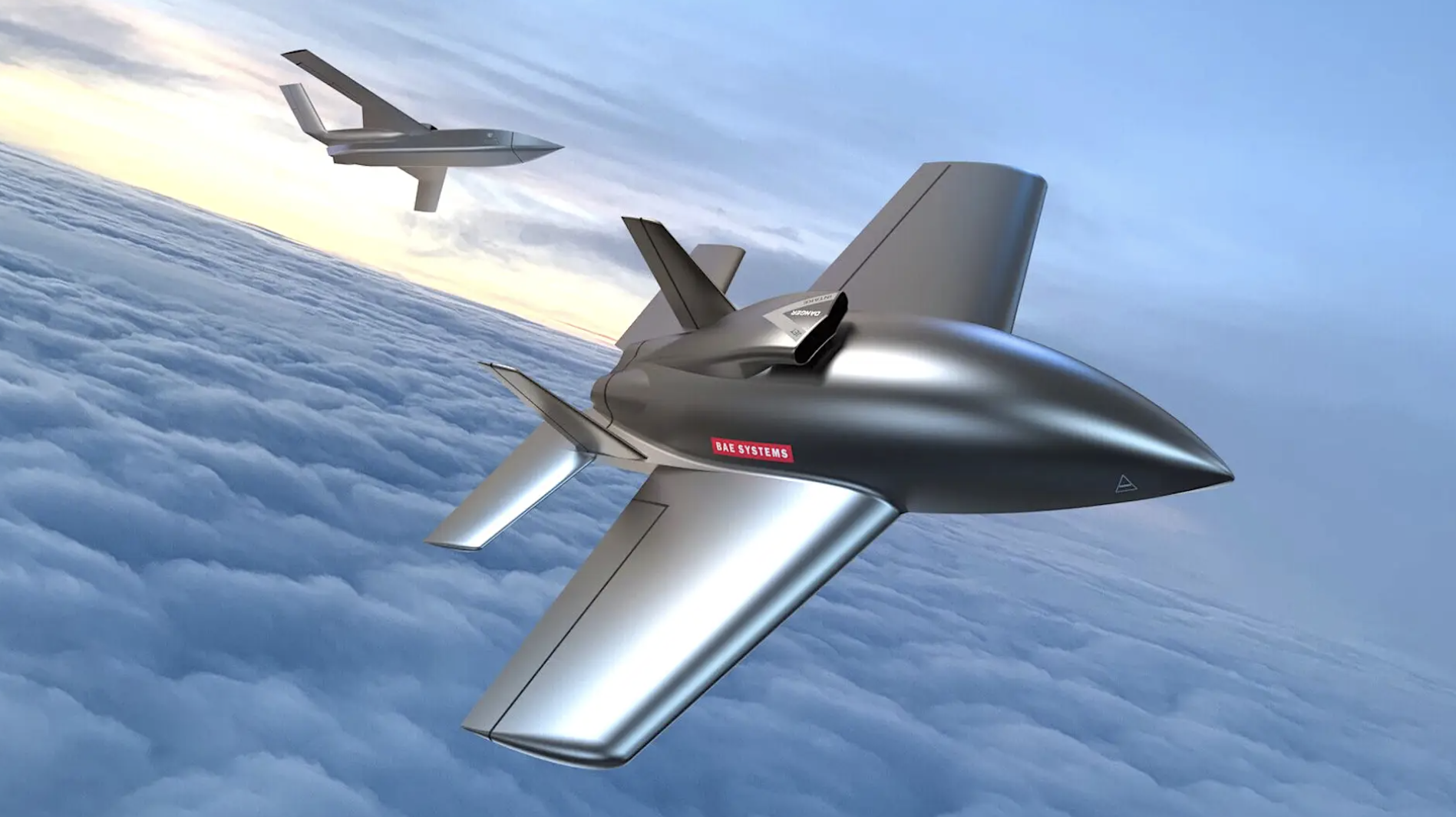 BAE Systems’ “agile and affordable” drone concepts to meet the demands of a “complex and rapidly evolving battlespace.” The smaller drone in the foreground is broadly comparable to the Jackdaw. BAE Systems