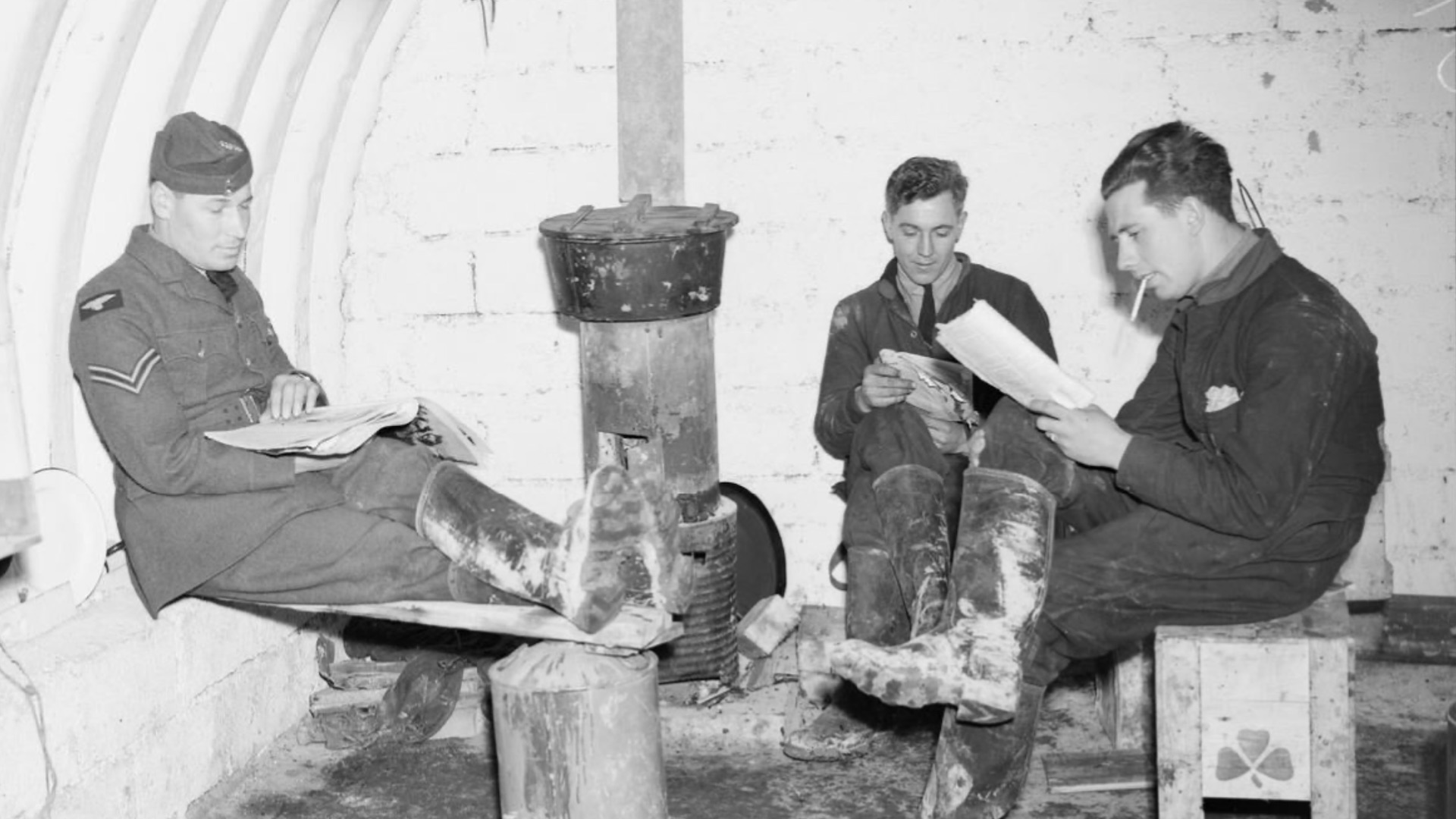 Mechanics of No. 73 Squadron Royal Air Force rest in an underground shelter on the airfield at Rouvres, France, during World War II (date unknown). Copyright: © IWM