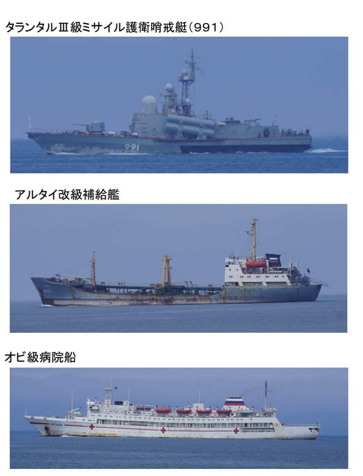 Separately, on June 17, the JSDF tracked a Russian Navy Project 1124 Grisha class corvette, six Project 1241 Tarantul class corvettes, a Project 160 Altay class replenishment oiler, and a Project 320 Ob class hospital ship, heading west from the Sea of Okhotsk into the Sea of Japan via the Soya Strait. The images below from the Japanese Ministry of Defense show where this flotilla was tracked sailing last week, as well as the individual ships.