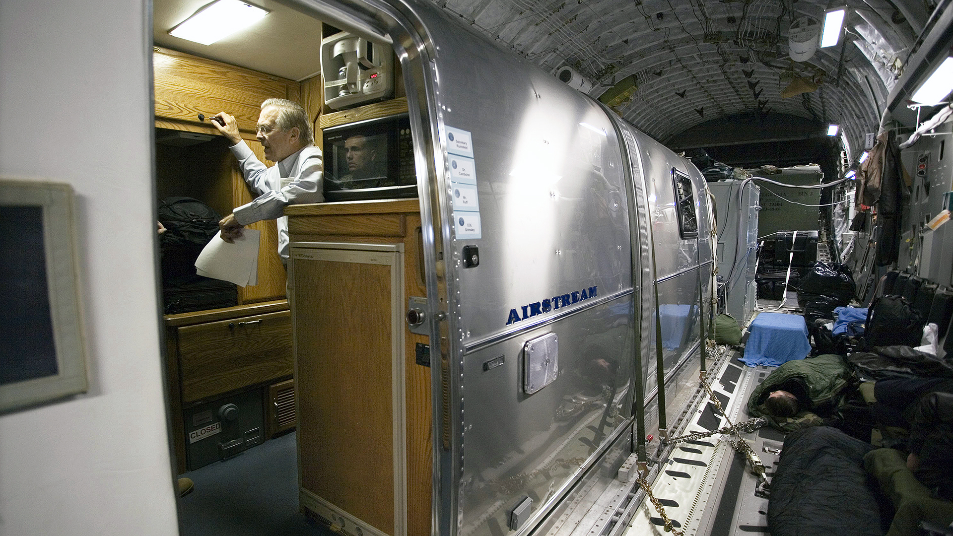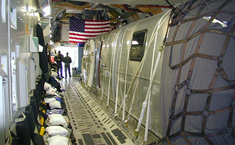 For years, U.S. cabinet members, service secretaries, and other military leaders, vice presidents, and even celebrities like Robin Williams and Drew Carey spent time flying long distances aboard C-17s in the comfort of the two highly-modified Airstreams. Appropriately dubbed the “Silver Bullet Command and Control Module” (CCM), they are owned by AMC and maintained by the 89th Maintenance Group at Joint Base Andrews, Maryland. The military sometimes uses the C-17 as a chariot of choice because it allows travel into hostile places in a non-descript manner, has an advanced countermeasures and self-defense suite, can maneuver hard if needed and can get into pretty much wherever.
