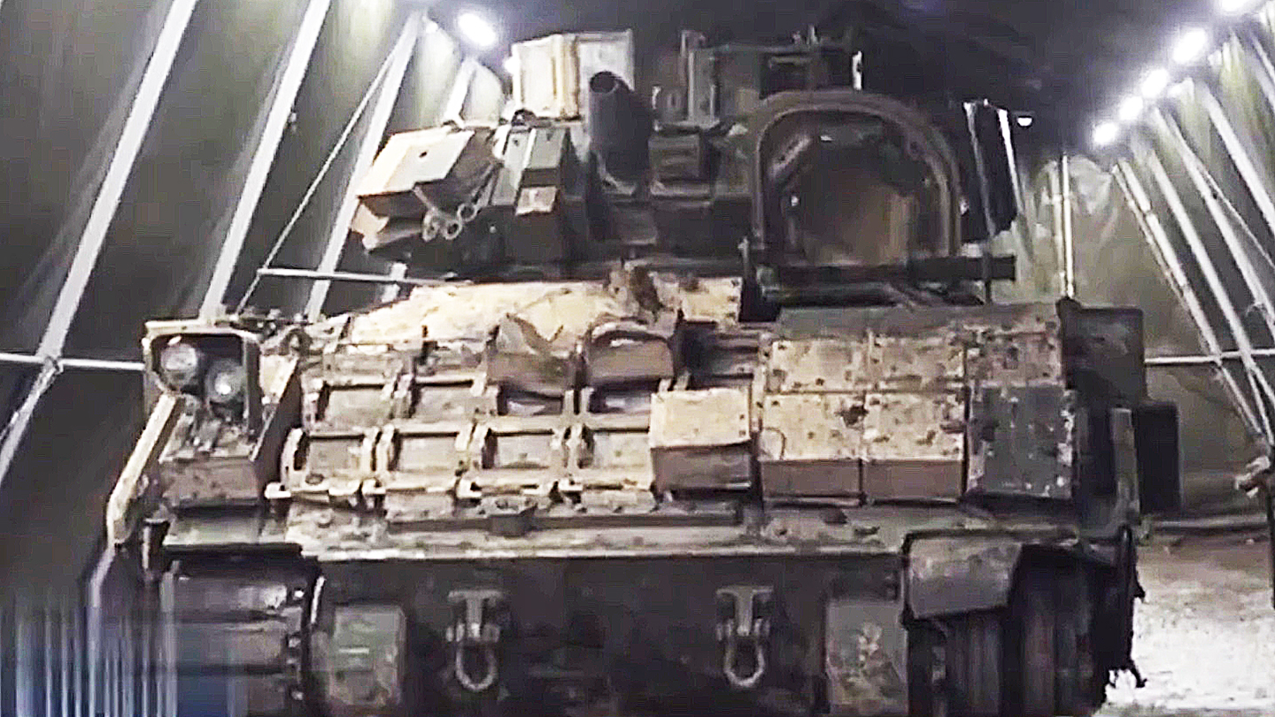 In a news segment broadcast on Russian television Wednesday, a reporter gave a tour of an M2A2-ODS Bradley Fighting Vehicle recovered from the battlefield in Ukraine. Russia claims the effort to retrieve the vehicle intact was a challenging one.