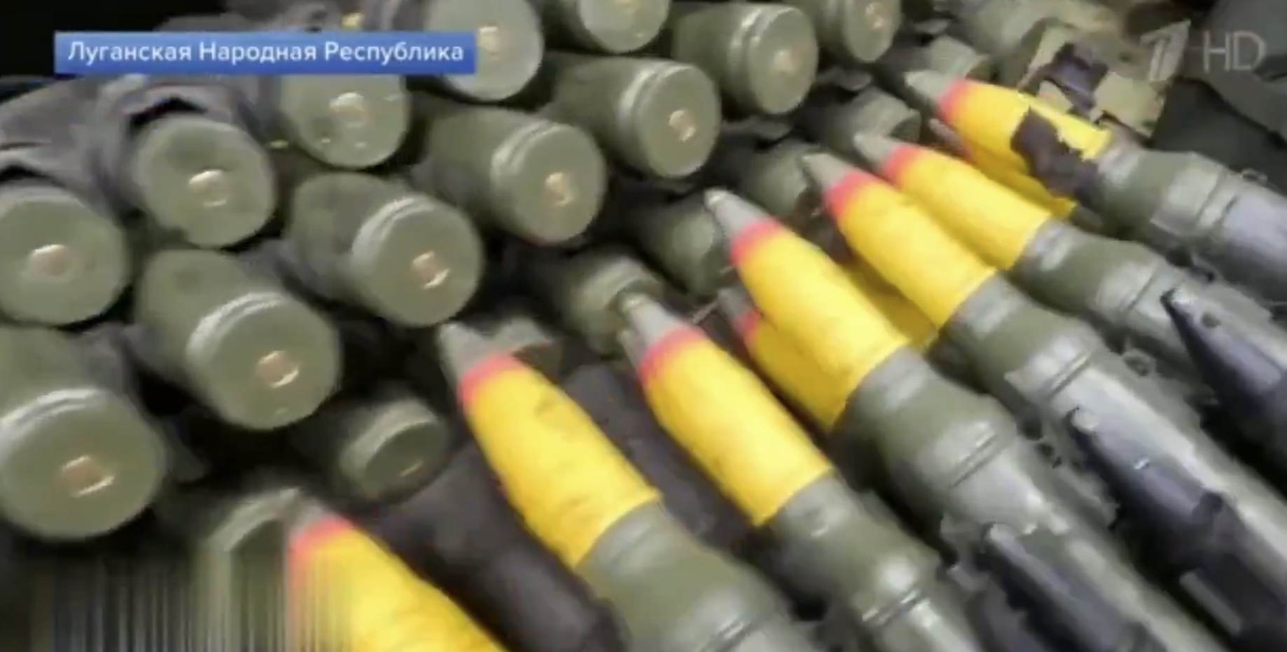 While the segment shows the 7.62 coaxial machine gun intact, it does not show the Bushmaster’s barrel or a dual-tube BMG-71 TOW (Tube-Launched, Optically Tracked, Wireless-Guided) missile launcher that Bradleys can also be equipped with present. Video posted by the Kremlin-connected Rybar Telegram channel shows the TOW on a captured Bradley being towed by a Russian vehicle. However, it is unclear whether this is the same Bradley. The TV presenter said the one he was in was captured in Luhansk Oblast while Ryber says its video is of one captured in Donetsk Oblast, near the Avdiivka Coke plant.