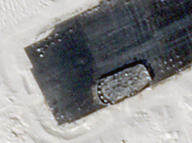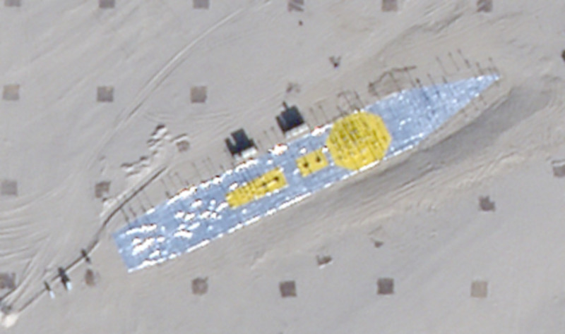 Work on the new carrier target began in November 2023. A review of past satellite imagery available through Planet Labs also shows that a rough outline of a carrier has been present there for some time. Several smaller aircraft carrier silhouettes have also been erected within the larger outline and subsequently removed at this site in the Taklamakan Desert on multiple occasions since 2021.
