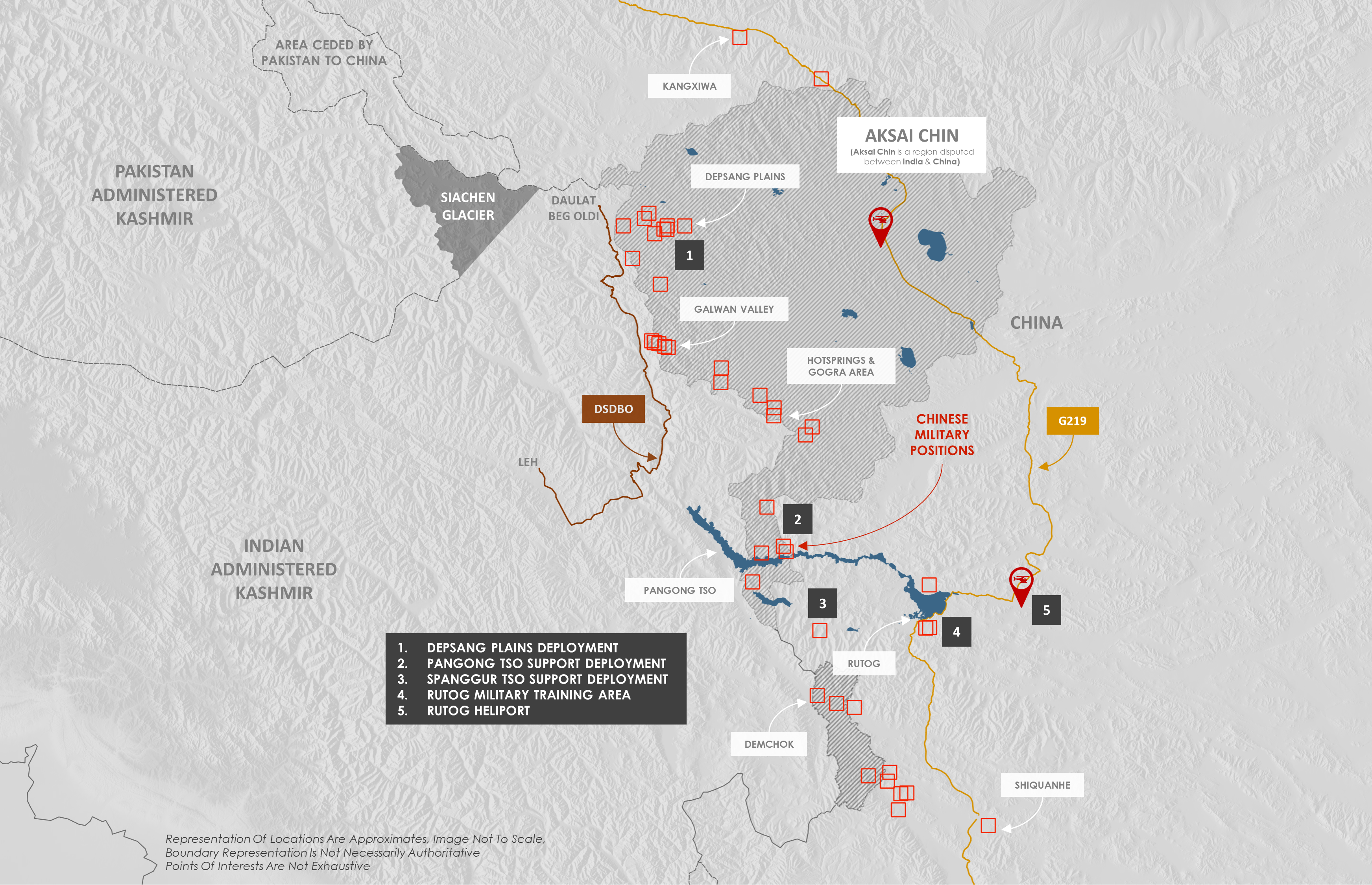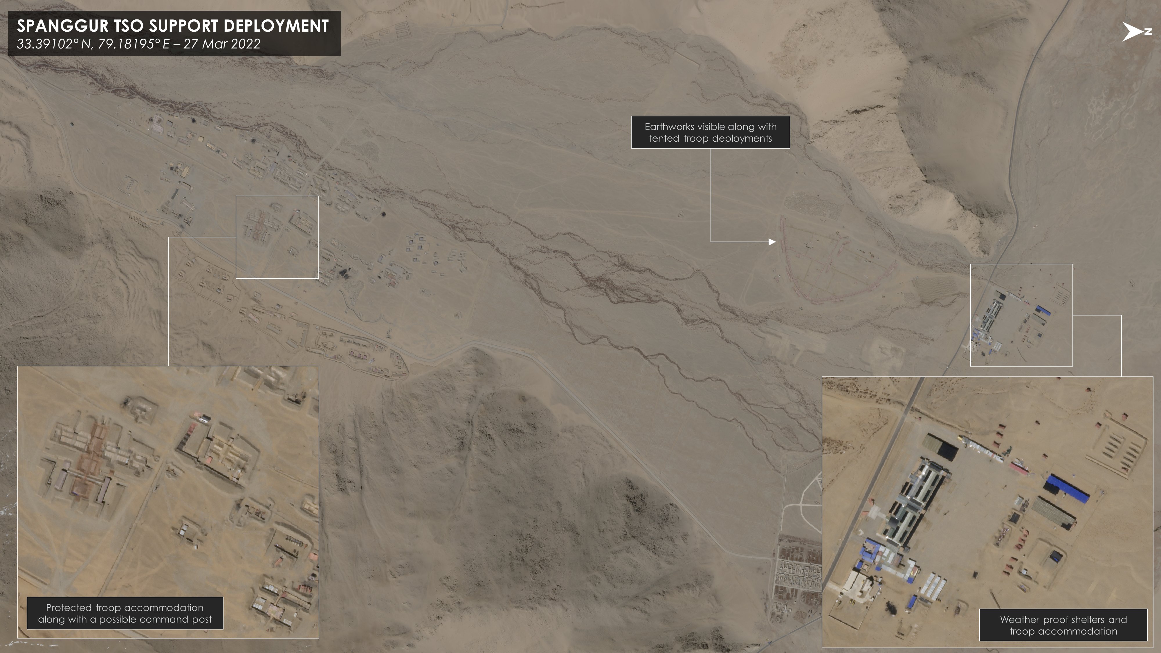 China does maintain some rather rudimentary temporary positions in the Spanggur Lake area (just south of Pangong Lake), but even these positions are directly supported by permanent military positions that China developed at Pangong Lake and the even larger military support positions deeper into China at Rutog.