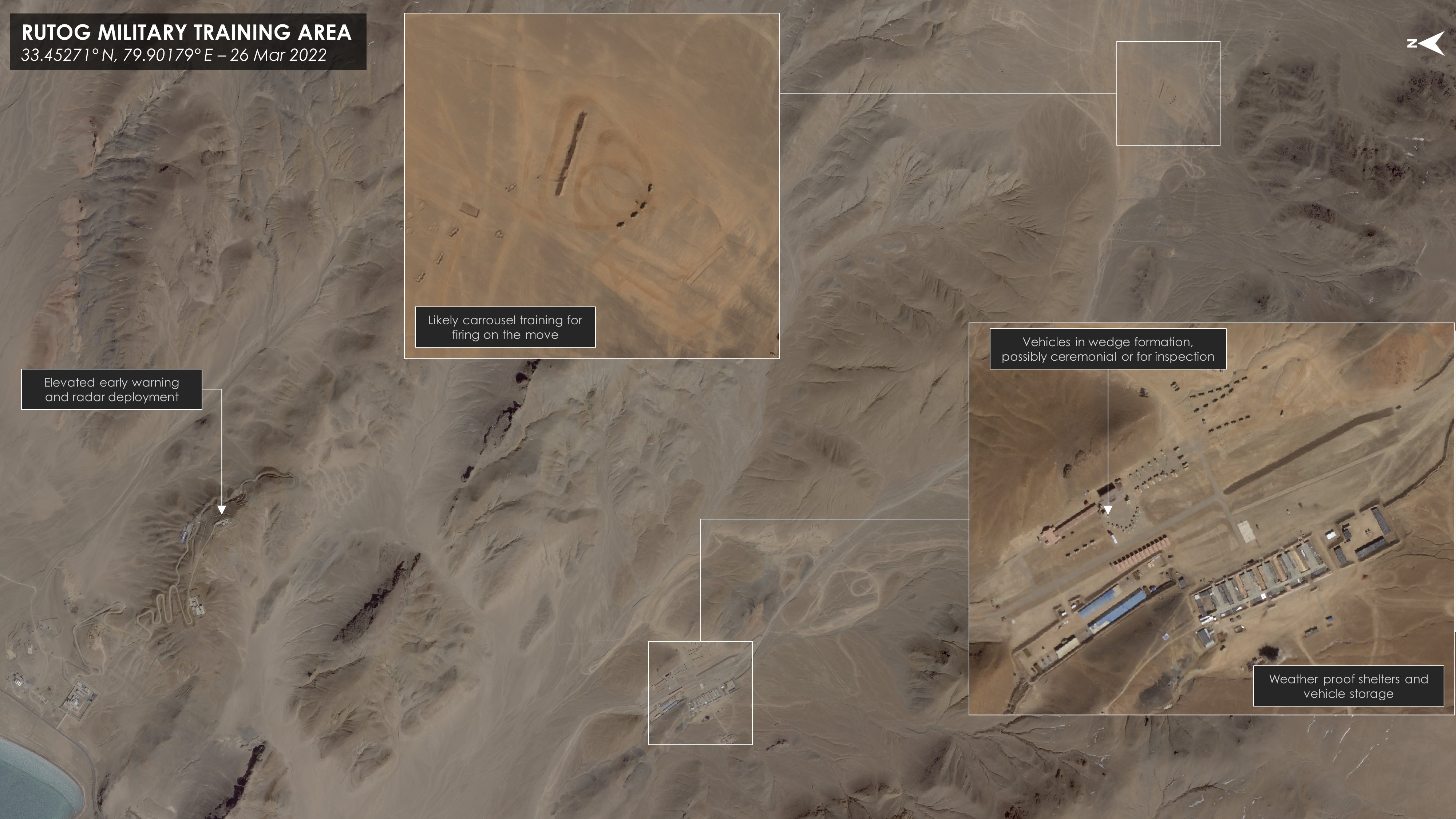 The expansion of China’s forward deployments and logistical support even expands beyond the Aksai Chin region itself. Since the beginning of the 2020 crisis, China has erected veritable military cities from the empty desert. These immense bases directly support China’s ability to maintain troop presence within Aksai Chin, and offer it the ability to rapidly surge its military presence in the area during future crises.