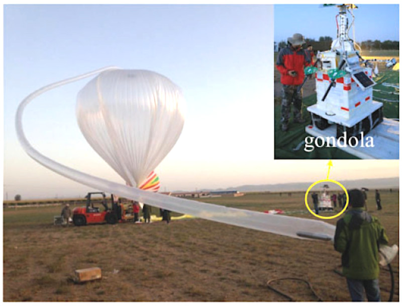 The balloon that carried the drones aloft, seen in the picture below, had an envelope with a total volume of around 7,000 cubic meters (close to 247,203 cubic feet), a maximum payload capacity of 150 kilograms (nearly 331 pounds), and stayed aloft for eight hours in total, according to a release from China’s Aerospace Information Research Institute, which is part of the Chinese Academy of Sciences. The Academy of Optoelectronics at the Chinese Academy of Sciences in Beijing was principally responsible for the design of the balloon and the drones.