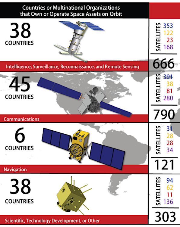 “There are a number of civil and commercial applications for remote sensing data, such as environmental monitoring, urban planning, and disaster response. High demand for this data and falling costs for capable technology have spurred the rapid growth and proliferation of these satellites,” NASIC’s 2018 report notes. “A decade ago, foreign remote sensing satellites numbered nearly 100 – by mid-2018, that number reached over 300.”