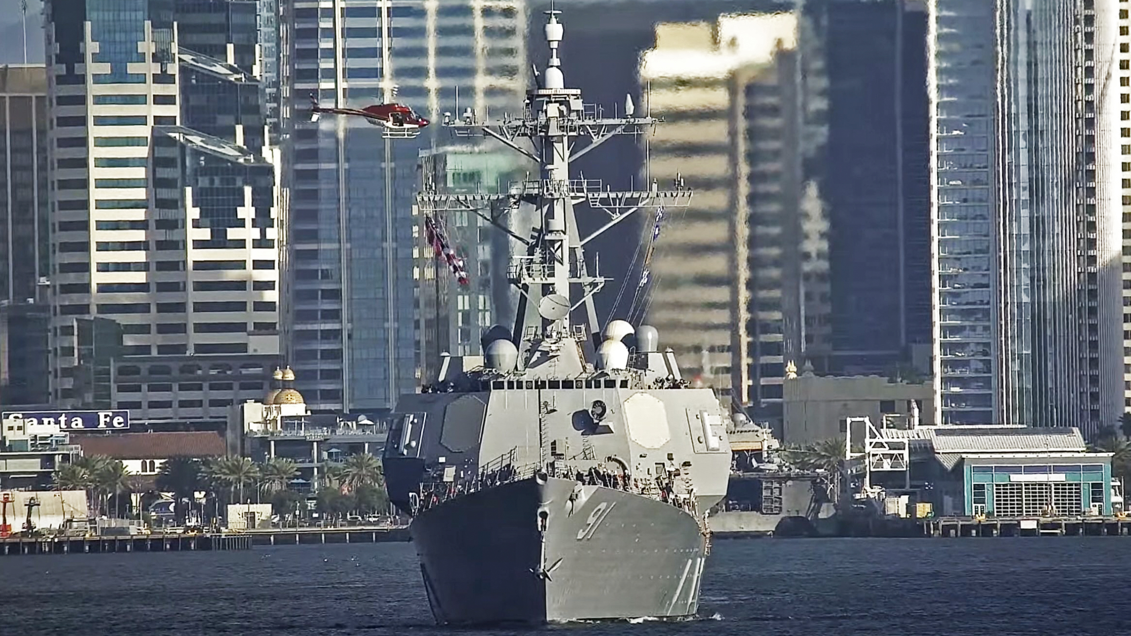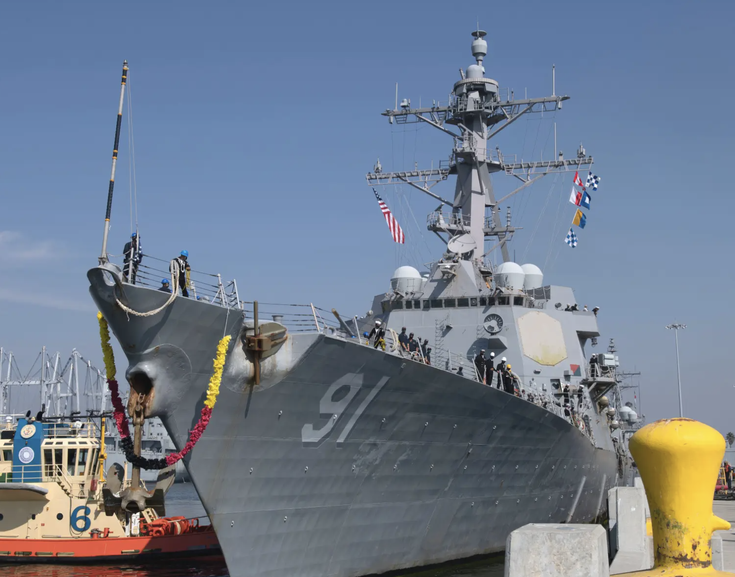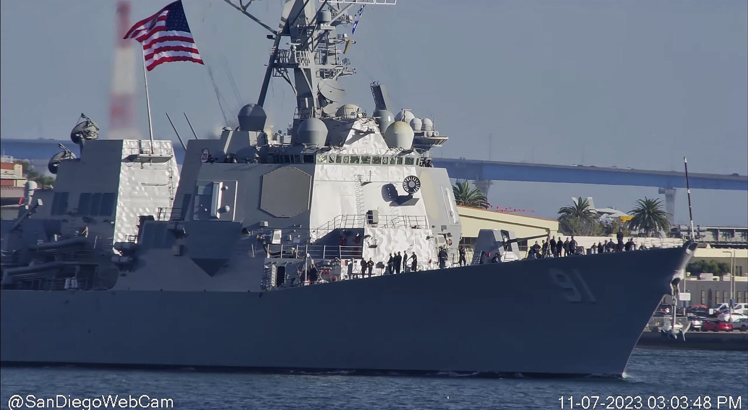 The photos in question depict the USS Pinckney (DDG-91), a Flight IIA subvariant, and the first of the Arleigh Burke class to receive SEWIP Block III. The vessel left San Diego yesterday after a two-year regularly scheduled maintenance period, which included the upgrade.