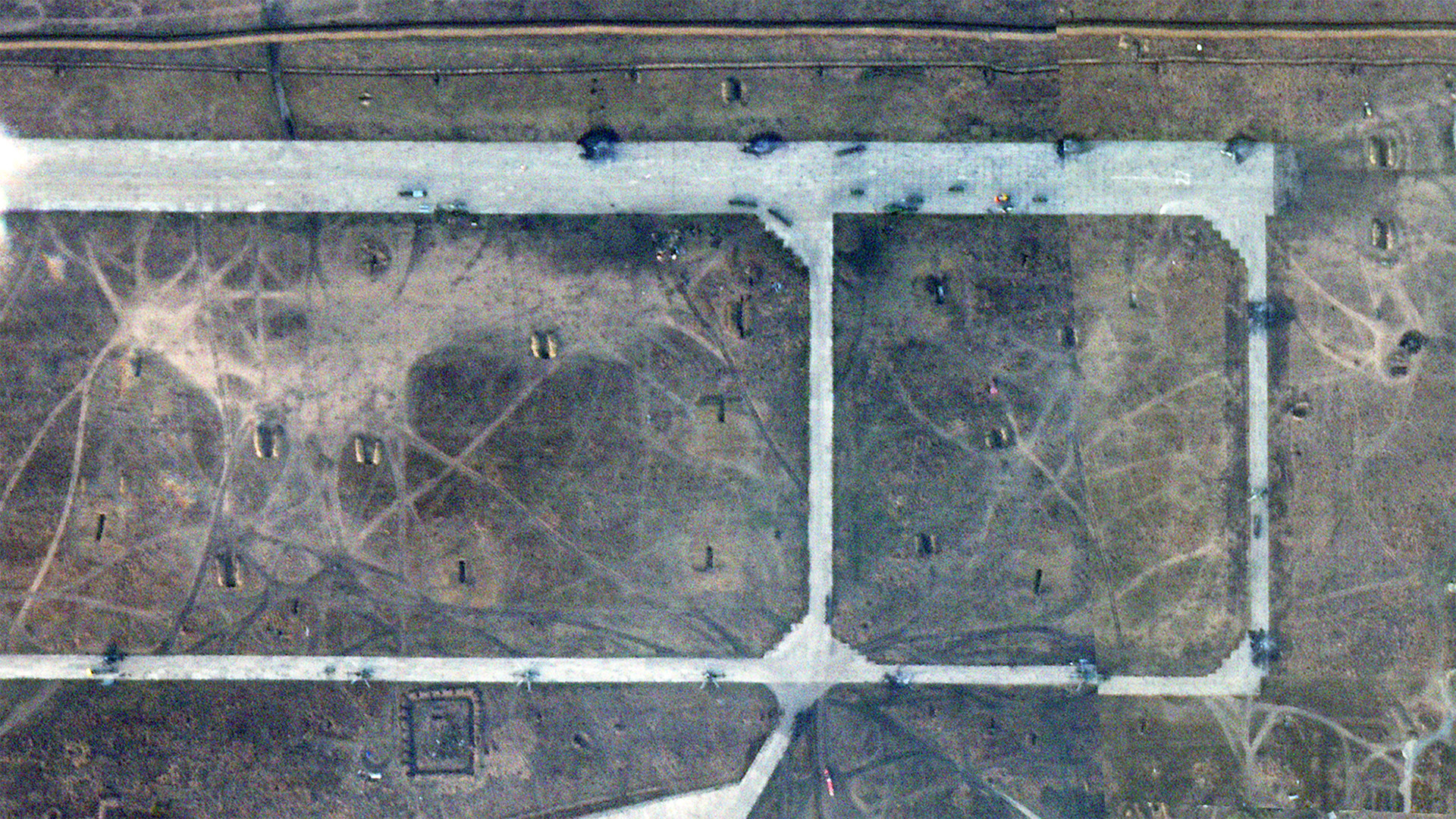 This facility has been in use as a Russian air base for months now. It is a known hub for helicopter operations in particular. What looks to be a mixture of Ka-52, Mi-24, and Mi-28 attack helicopters, as well as Mi-8/Mi-17 Hip transports (which can also be armed), have been observed there in past satellite imagery.