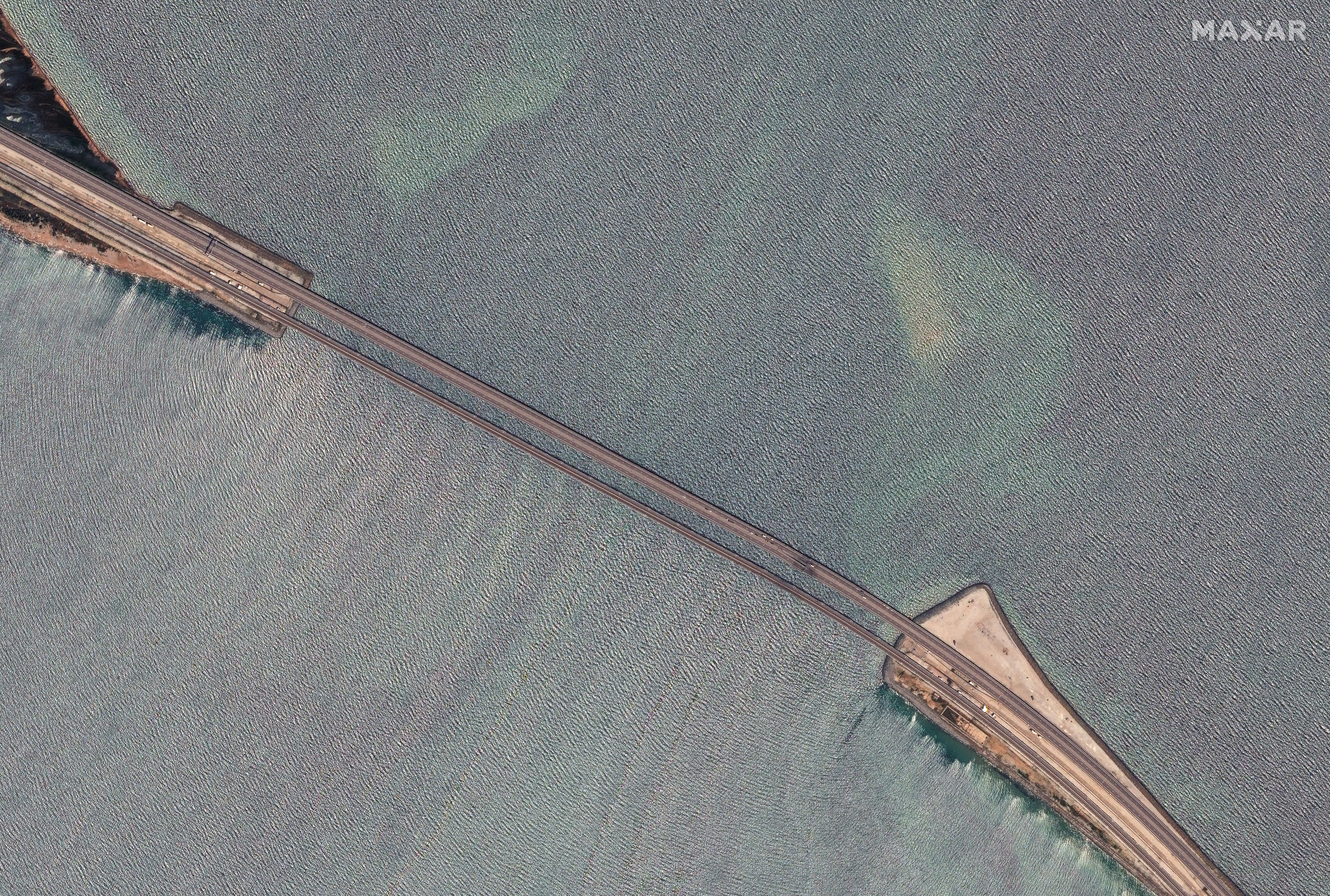 The Kerch Bridge is a key span for Russian logistics as it fights Ukraine’s counteroffensive pushing slowly south toward Crimea. As we mentioned earlier this morning, vehicle traffic that normally would flow across the bridge is being rerouted via routes through territory in Kherson and Zaporizhzhia oblasts that Russia occupies.