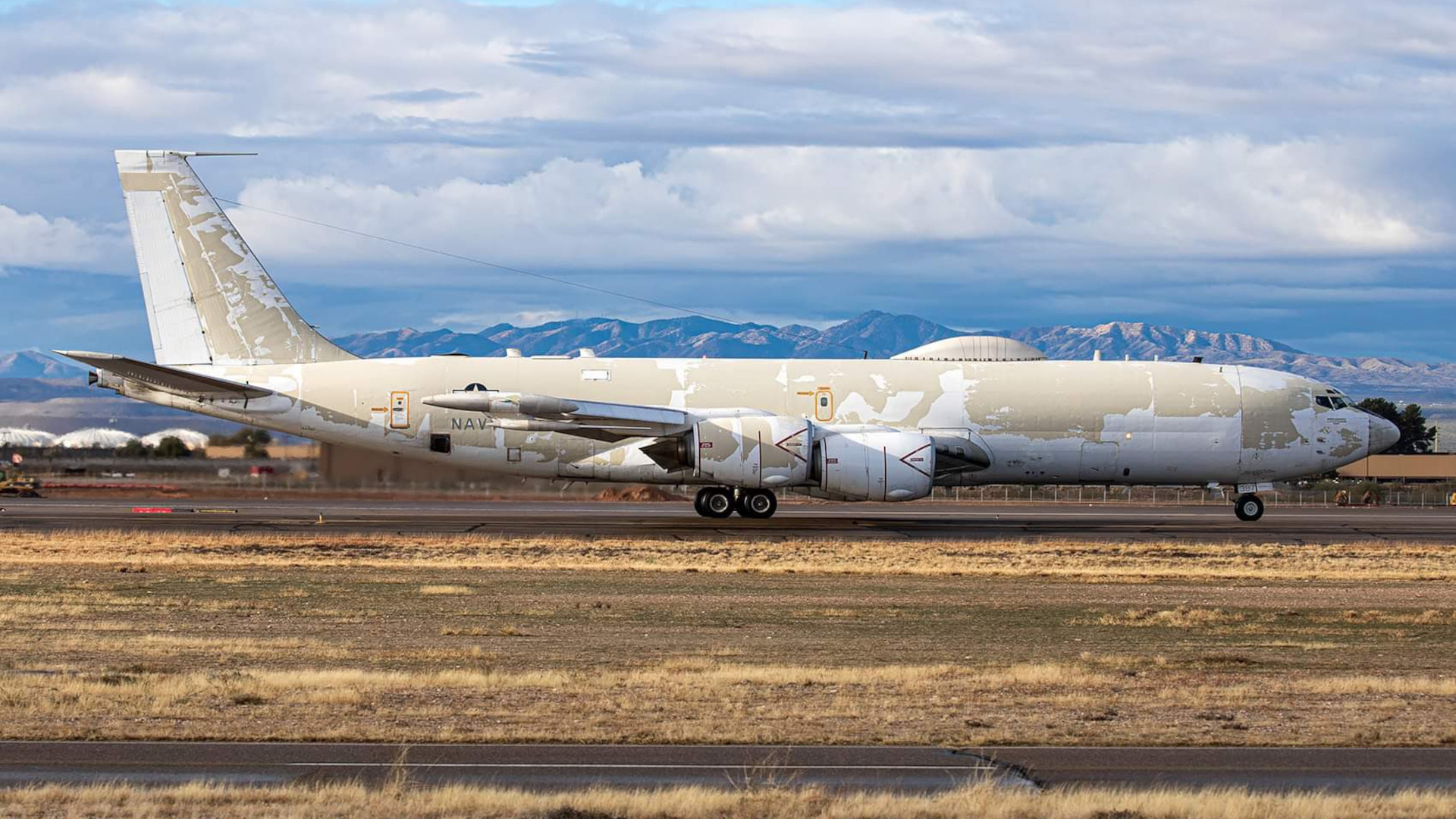 A U.S. Navy E-6B Mercury recently turned heads in Tucson, Arizona after it appeared there with what looked to be a heavily weathered paint job. The War Zone subsequently reached out to the Navy for more information and have learned that the service is itself working to get to the bottom of the matter. The Navy’s E-6Bs are so-called ‘doomsday planes’ that serve as airborne command posts for America’s nuclear deterrent triad.