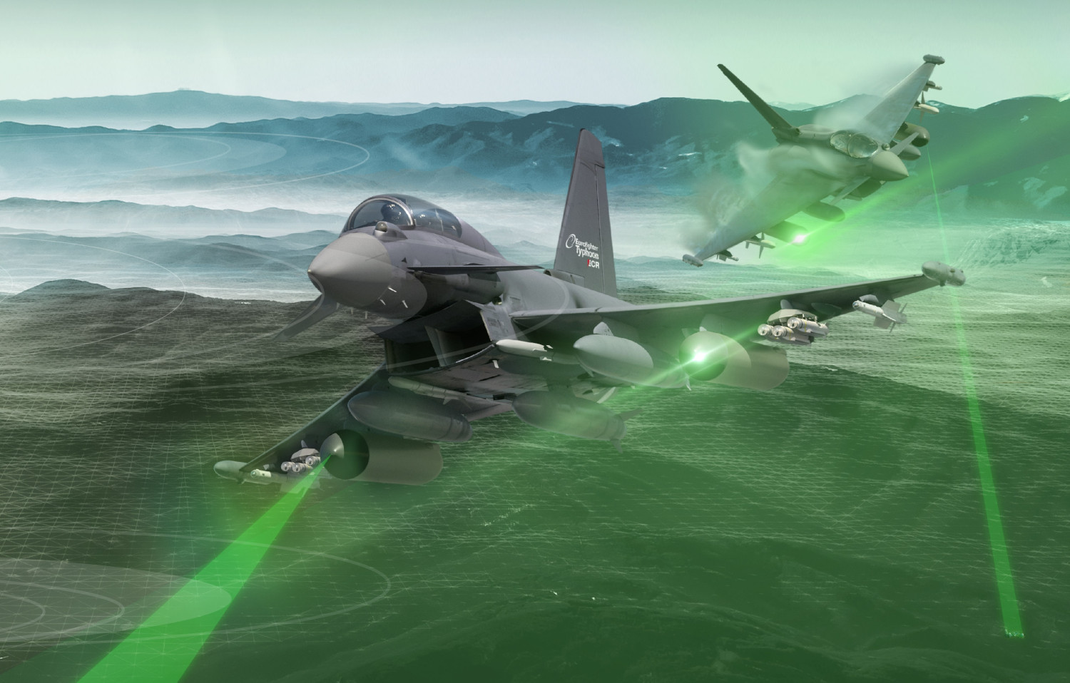 Artwork Airbus released today does indicate that Germany’s forthcoming Typhoon EKs will be single-seat variants. The rendering also shows that the jets will feature new wing tip pods similar to the ones found on Saab’s Gripen E/F fighters. Gripen E/Fs also have a version of Arexis, but primarily for self-protection. The pods on Gripen E/F also have a built-in rail so that the jets can still carry IRIS-T air-to-air missiles on their wing tips. Existing Typhoon variants do not have wing tip missile rails, but do have pods that contain electronic countermeasures and towed decoys as part of the existing Praetorian self-protection suite.