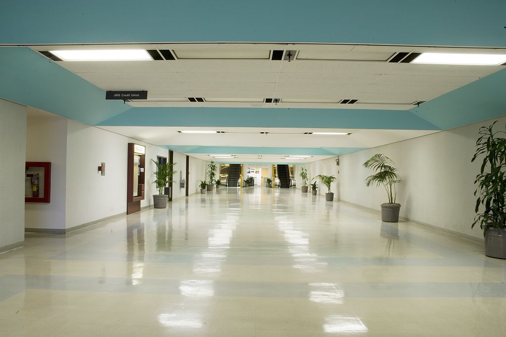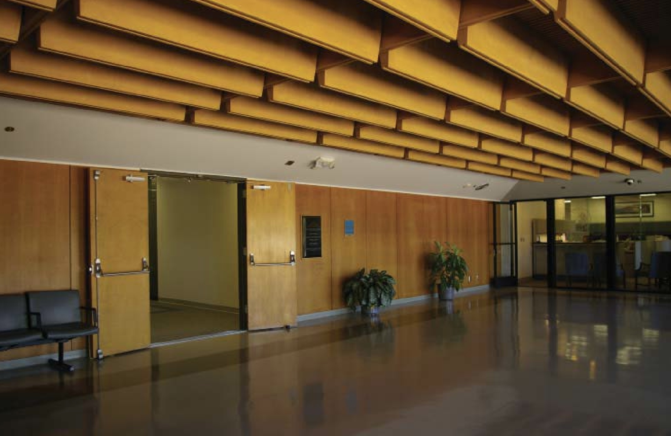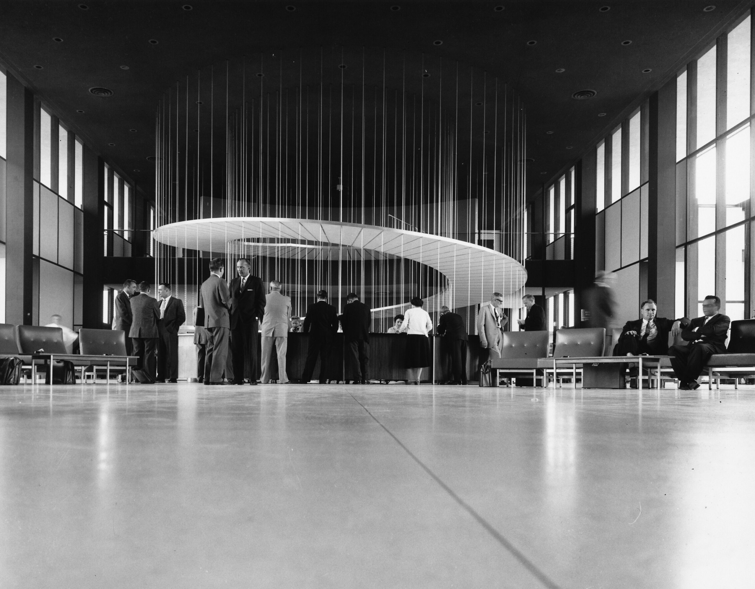 Similar to his work with Convair Astronautics and others, Pereira also designed the inside of the building. Bold, modern geometric shapes can be seen throughout. The interior of the building also features wide-angle spaces, no doubt intended to present a modern, expansive mid-century feel.