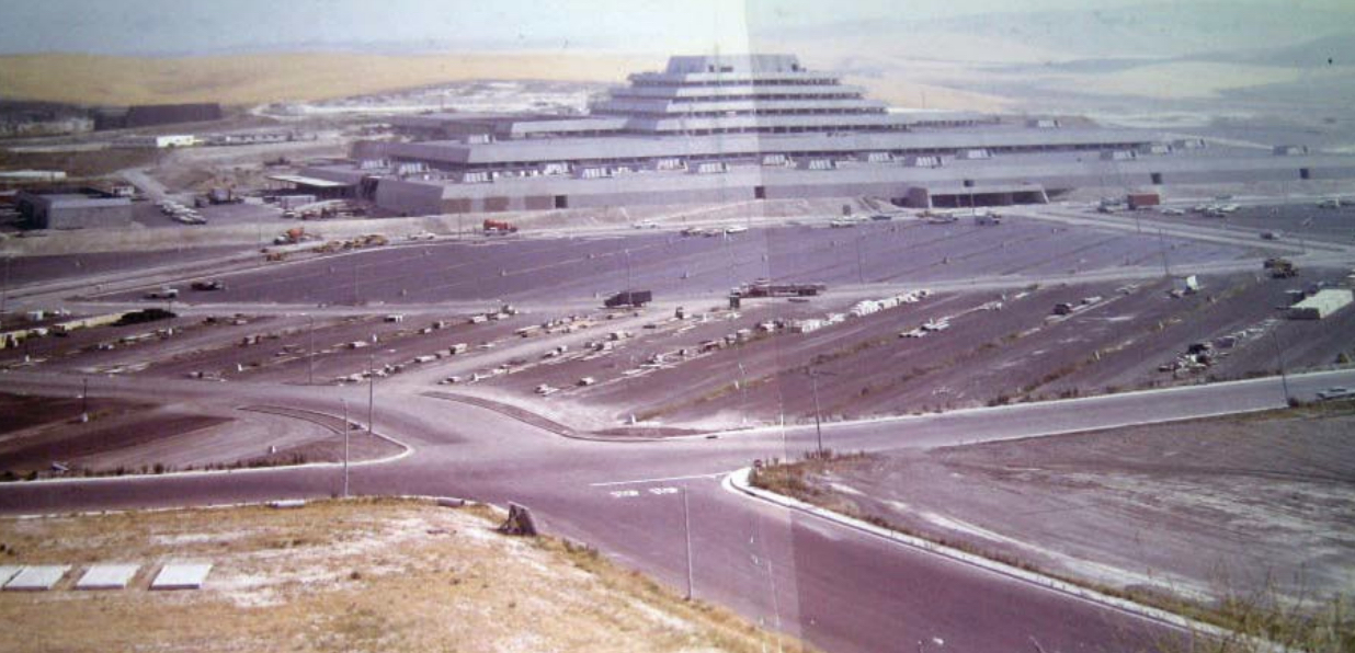 Construction of the building began in 1968, when Rockwell offered Huber, Hunt, and Nichols, Inc. an $18.5 million contract to bring Pereira’s design to life. The building was built by 1971. Rockwell had planned on using the various levels of it for different purposes; the lower floors for electronics manufacturing and assembly, the middle floors for engineering, and the top floors for management offices.