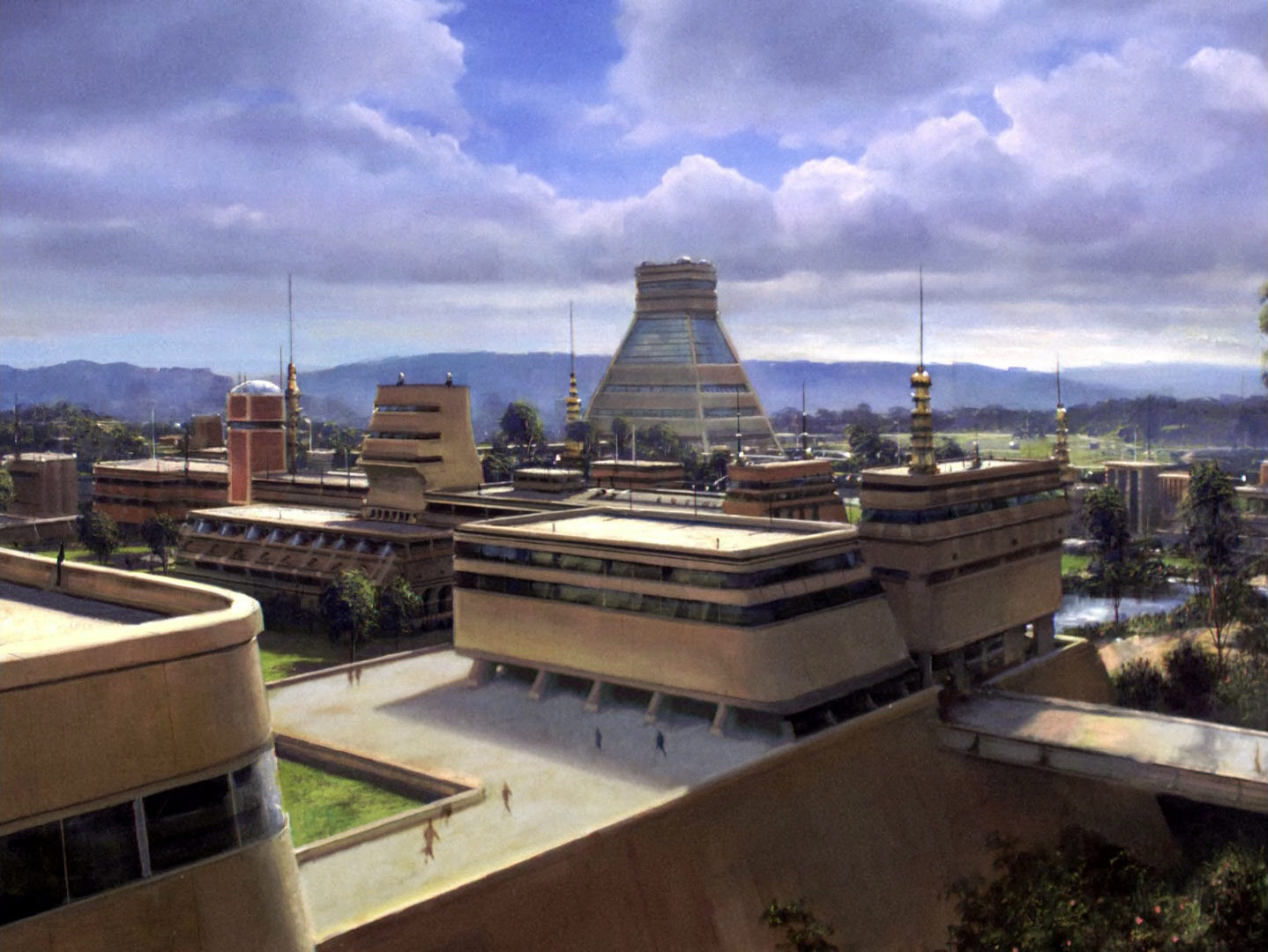 For a time, at least, the Chet Holifield Federal Building and other structures designed by Pereira represented something truly futuristic, even into the latter twentieth century. Indeed, one only has to look at the ’24th century’ cityscape matte painting scenes featured in Star Trek: The Next Generation to see similarities to the Chet Holifield Federal Building, notably the recessed windows, geometric shapes, and large concrete facades.
