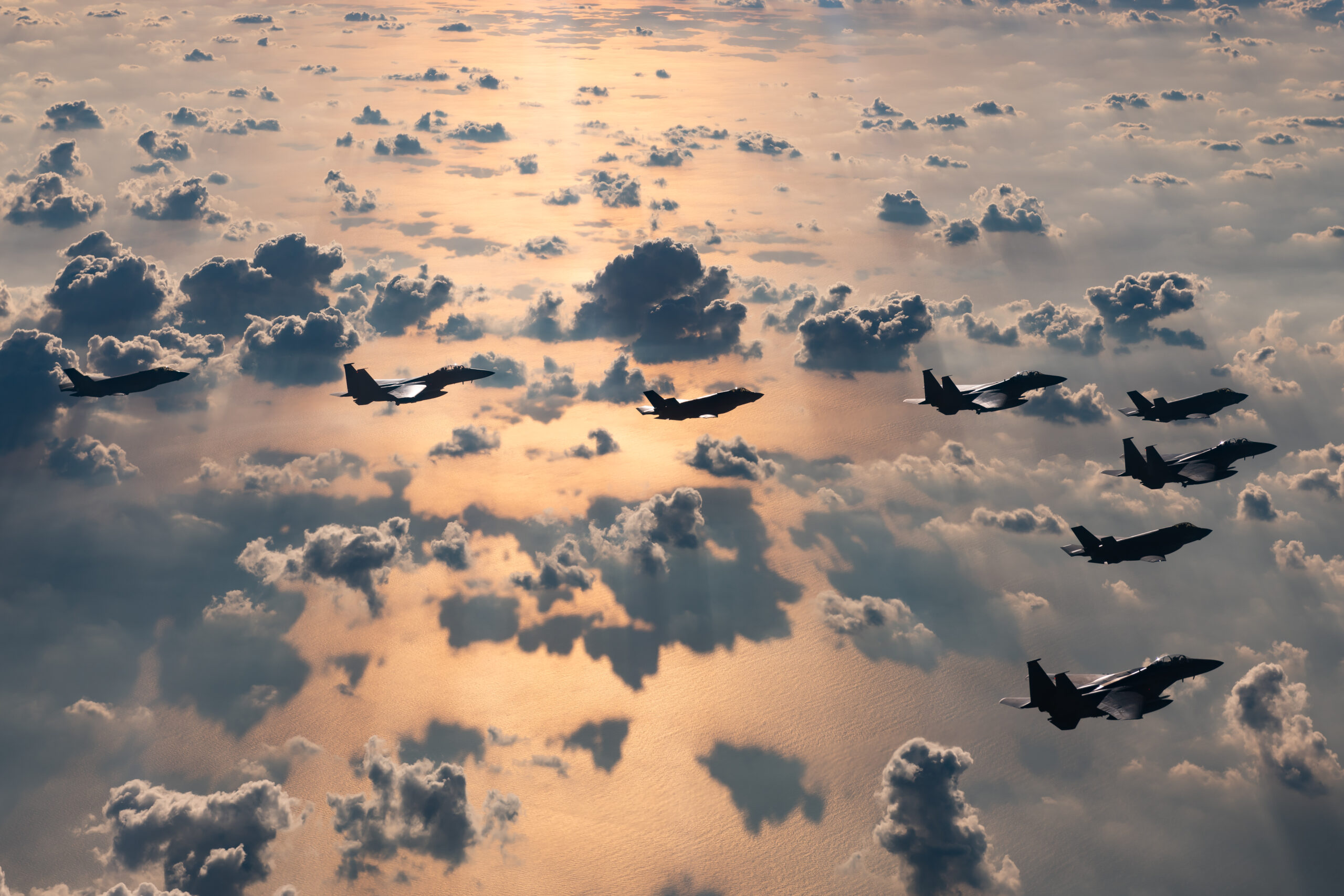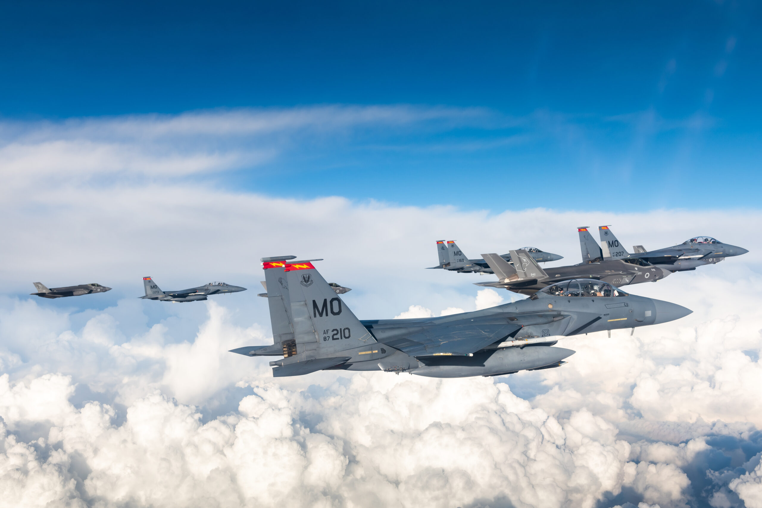 Defensive armament for the F-15Es consists of both radar-guided AIM-120 Advanced Medium-Range Air-to-Air Missiles (AMRAAMs) and heat-seeking AIM-9X Sidewinder air-to-air missiles.