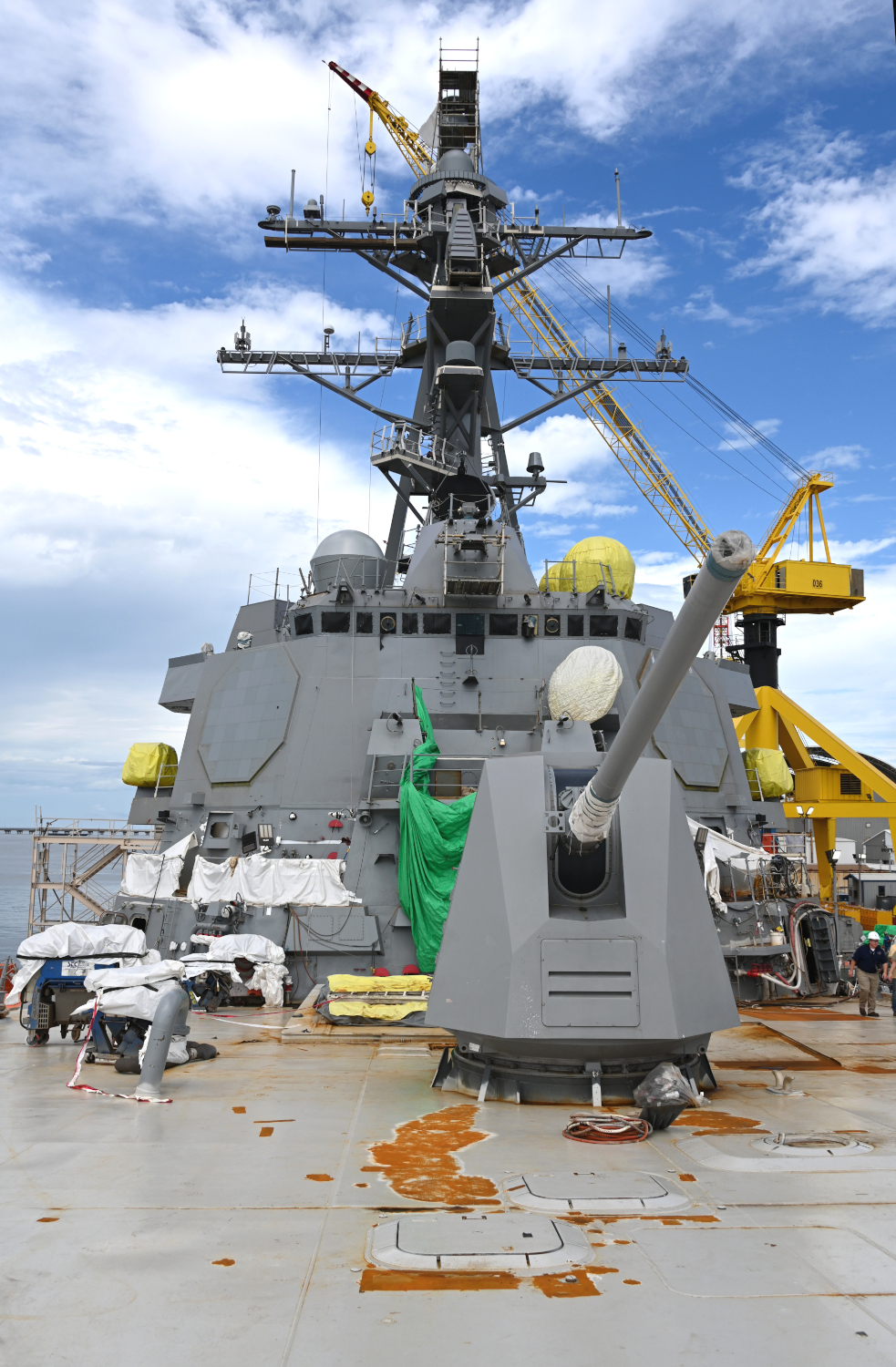 The U.S. Navy’s future Arleigh Burke class destroyer, the USS Jack H. Lucas, the first example of the Flight III subclass, now has the fixed-face arrays for its powerful AN/SPY-6(V)1 radar installed on its main superstructure. Also known as the Air and Missile Defense Radar, or AMDR, this is the Flight III design’s signature sensor and offers a major boost in capability over the AN/SPY-1D radars on earlier Arleigh Burkes.