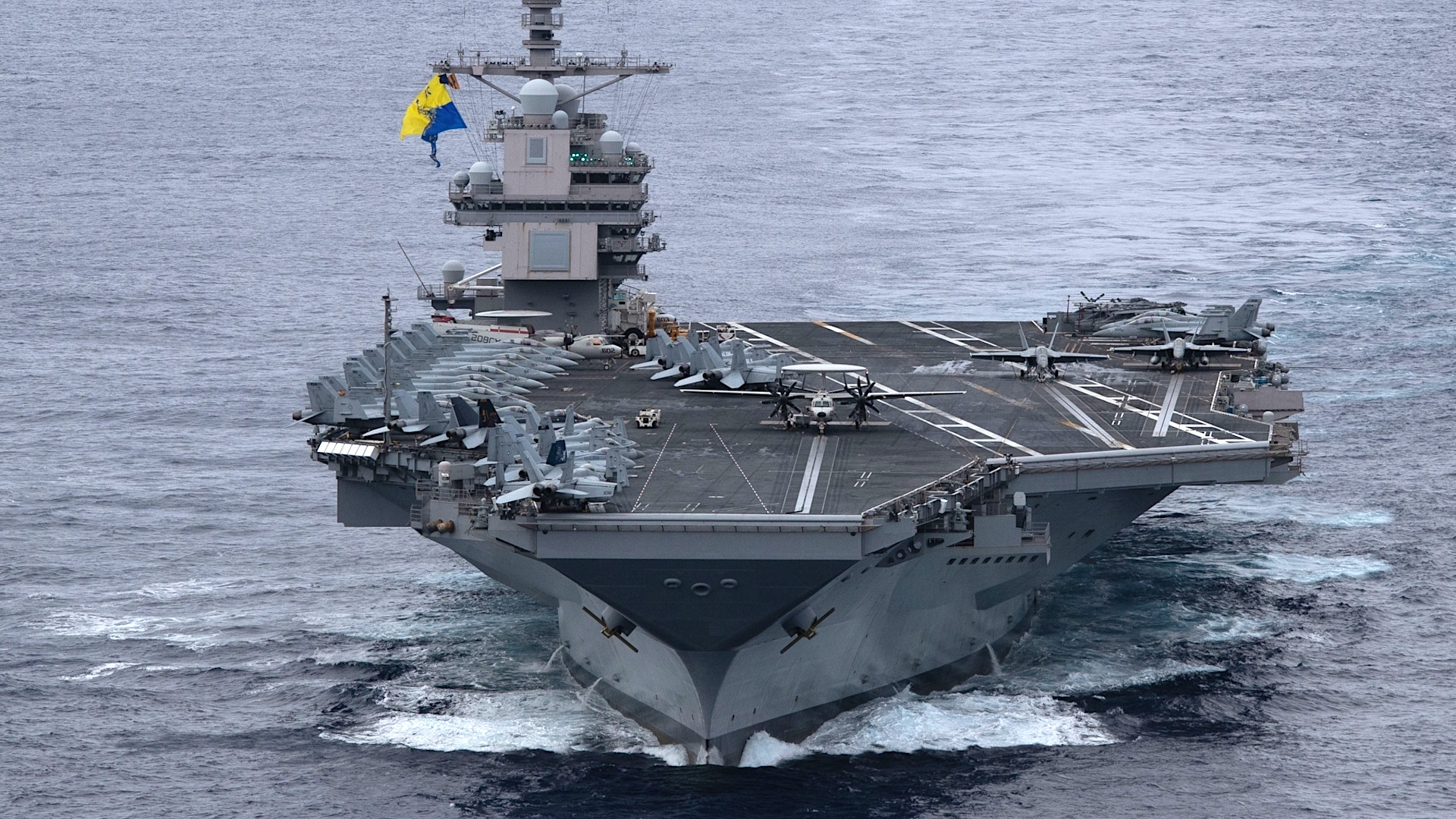 The U.S. Navy’s Nimitz class carrier USS George H.W. Bush is operating separately in the Adriatic Sea as part of its scheduled deployment, with a stated mission to help “defend U.S., allied and partner interests.” Bush‘s strike group consists of CVW 7 – which is organized in largely the same way as Ford‘s CVW 8 – as well as a number of escorts, the Ticonderoga class cruiser USS Leyte Gulf and four Arleigh Burke class destroyers.