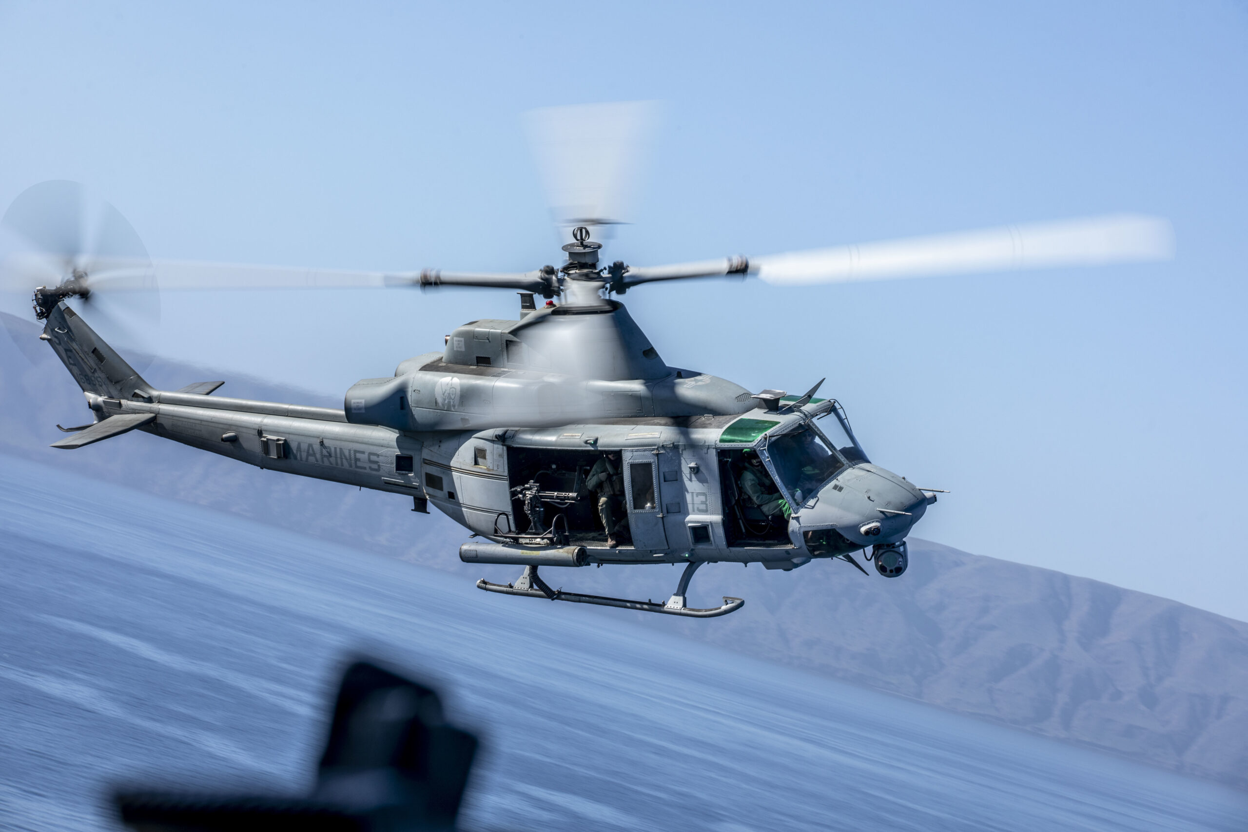 Marine Corps Capt. Michael Ayala was sitting in the back of a hovering UH-1Y Venom off the southern California coast in May, looking at the screen of a laptop. The image showed a drone-eye view of a Hero 400 loitering munition on its way to a pre-planned rendezvous with the helicopter.