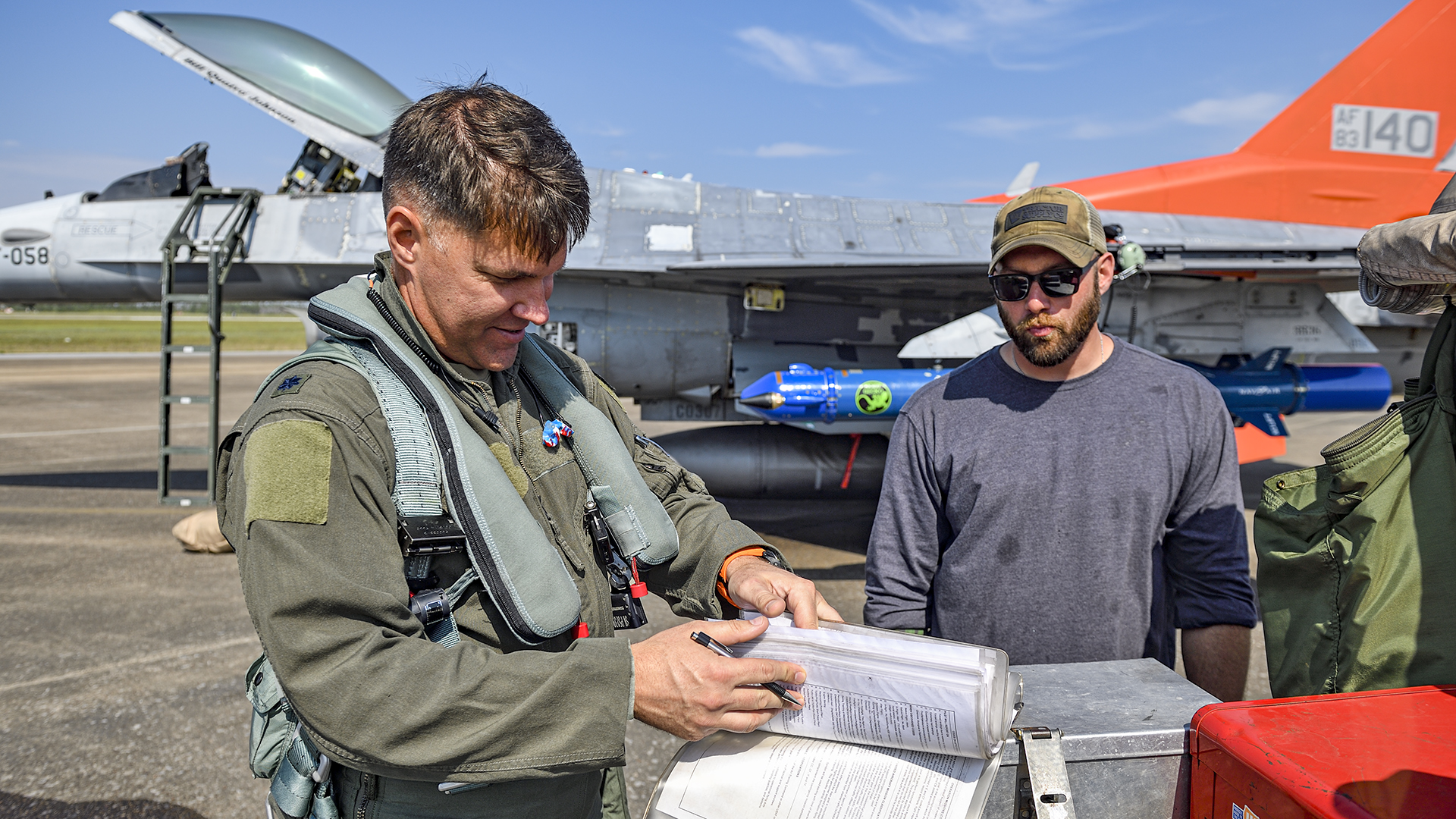 “If, for example, we have a test missile that’s not fully developed yet, [the testers] will have certain profiles they want flown,” DeWitt continues. “The QF-16s will initially fly the profile with a pilot in the airplane as a safety observer to see how it is performing, to help test the profiles, all while being flown from the ground. They watch over all the planned maneuvers so that when it comes time to do the live shot in NULLO configuration, they do it without the pilot but use the same control parameters. This means that when it’s time to shoot the missile it’s not our first look at the test, we’ve flown the profile a couple of times and we are as certain as we can be that it’s all going to work as planned.”