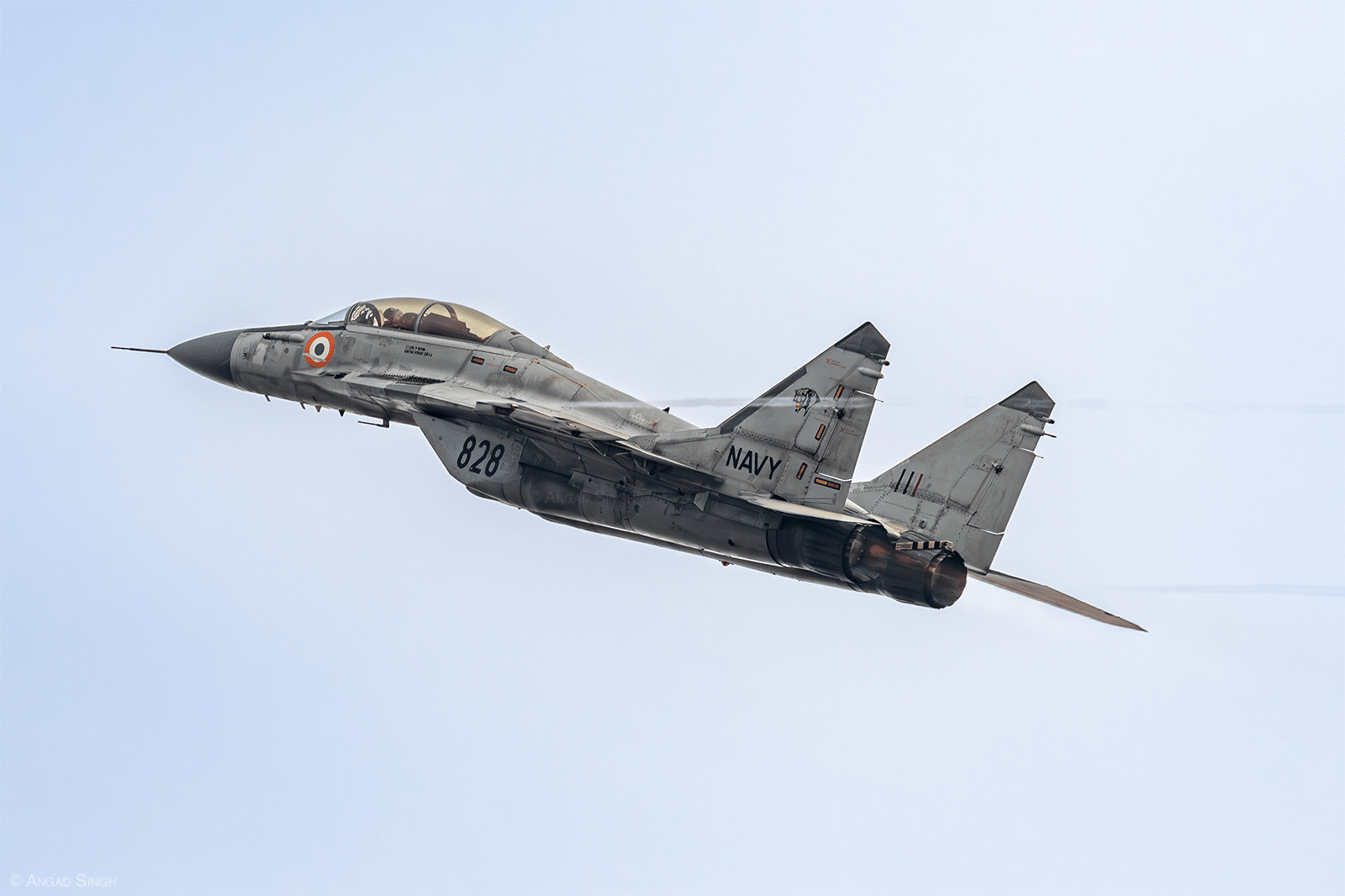 The ceremony saw an aerial tribute to the Il-38 from the aircraft of INS Hansa — first a Dornier 228 from INAS 310 “Cobras,” followed by a MiG-29K from INAS 303 “Black Panthers,” and then a P-8I from INAS 316 “Condors.” Finally, emerging from a literal setting sun over the western horizon, IN307 made an incredibly low pass over the runway, before gently pulling up, leaving the Il-38’s characteristically thick smoke trails hanging in the humid air.