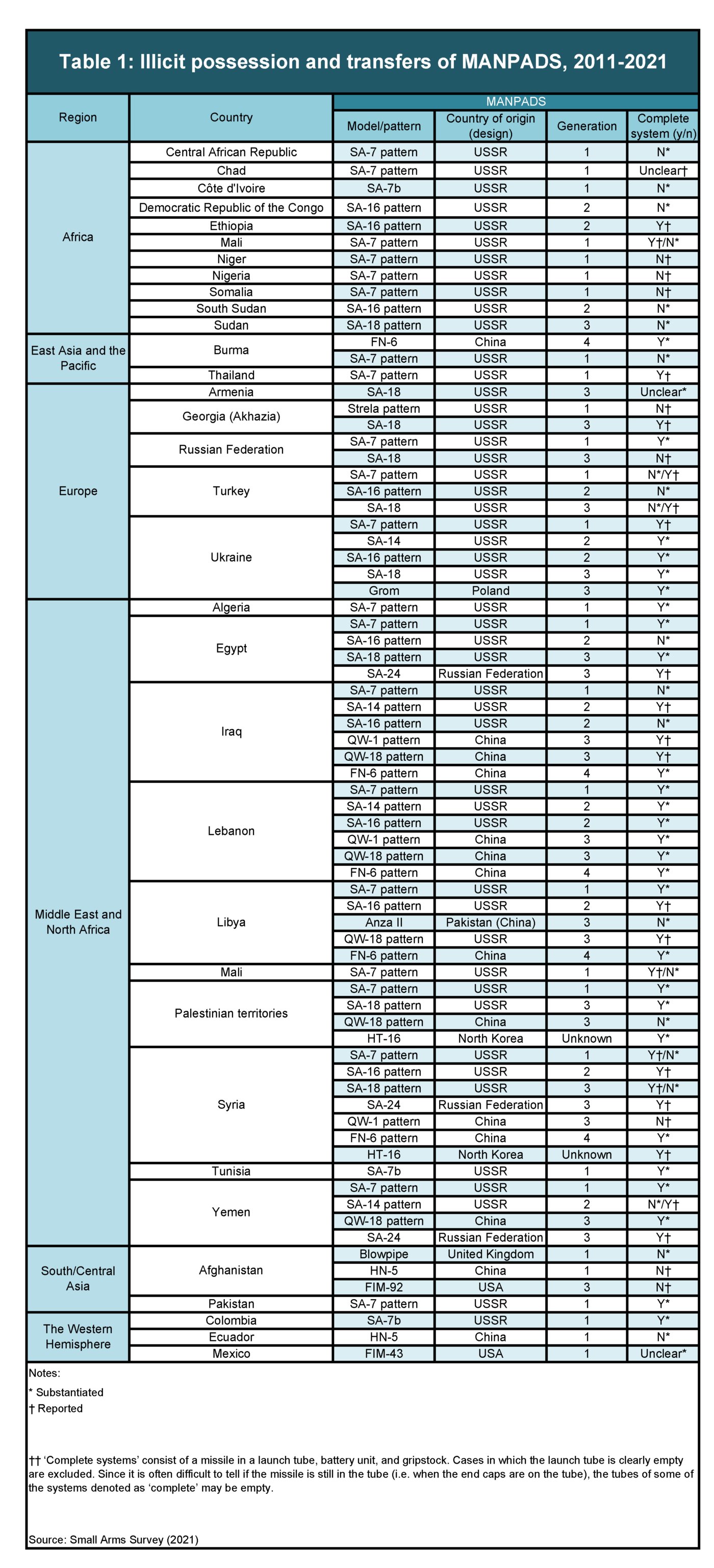 Small Arms Survey has now identified 49 ‘reported’ or ‘substantiated’ cases of “advanced Chinese-designed MANPADS in the possession of (or in transit to) at least 17 different armed groups in seven countries since 2011,” according to the report released today.