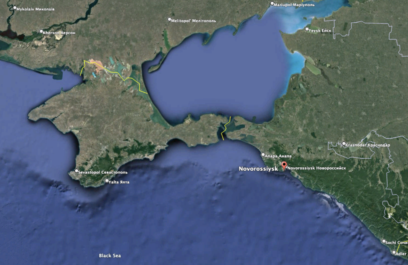 Satellite imagery subsequently confirmed the landing ship was moored at the Novorossiysk naval base with what may have been oil leaking from it.