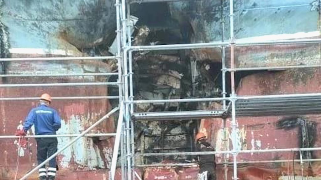 A new photo of the vessel in its floating dock appeared online yesterday, although the extent of the damage was not immediately obvious.