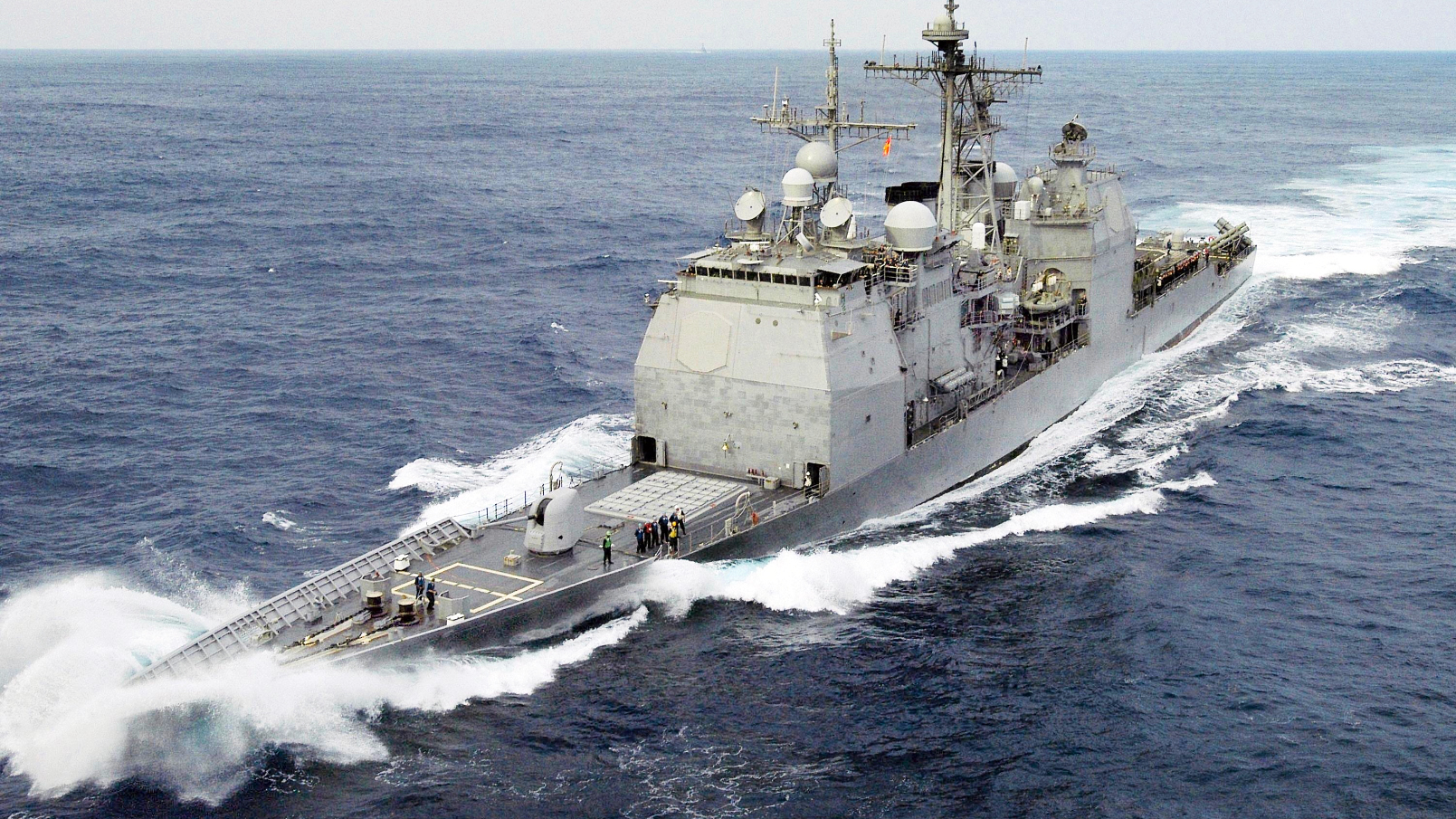 The U.S. Navy’s Ticonderoga class cruisers, meanwhile, are 567 feet long, have a beam of 55 feet, and a standard displacement of around 9,600 tons.