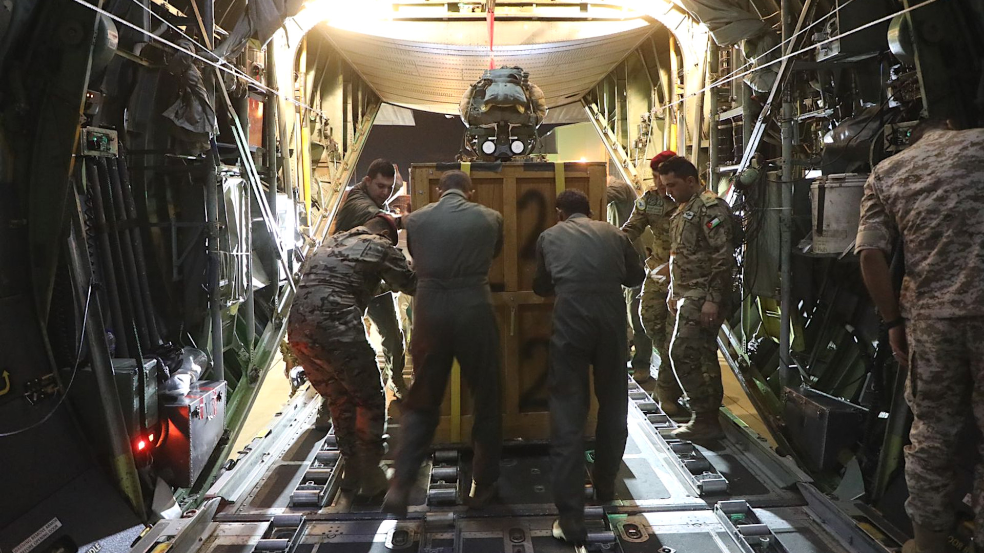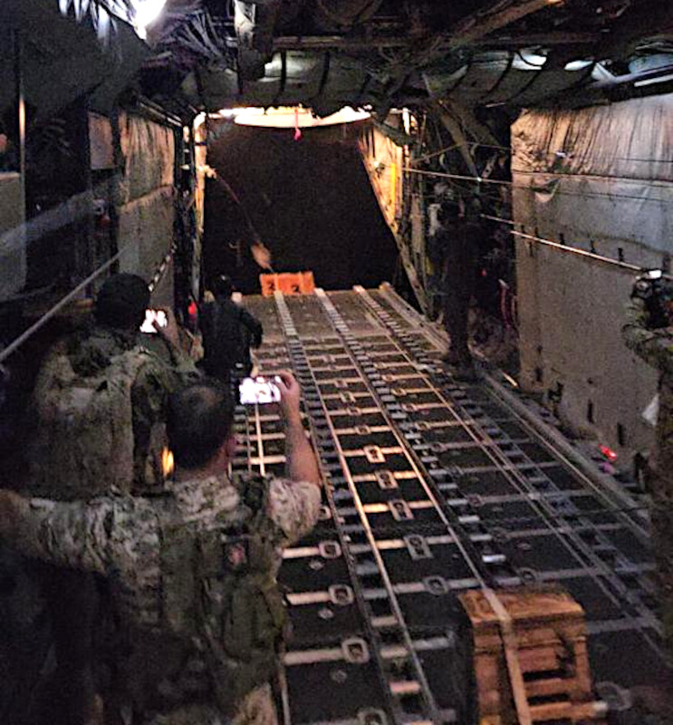 The Jordanian King’s post was accompanied by a number of pictures from the operation. The Jordanian armed forces released additional imagery. At least three pallets of cargo rigged for airdrop can be seen loaded inside a Jordanian Air Force C-130 Hercules airlifter in the images.