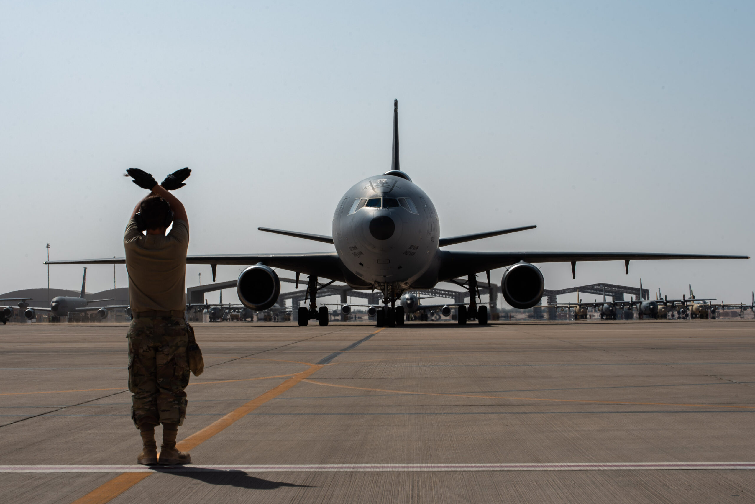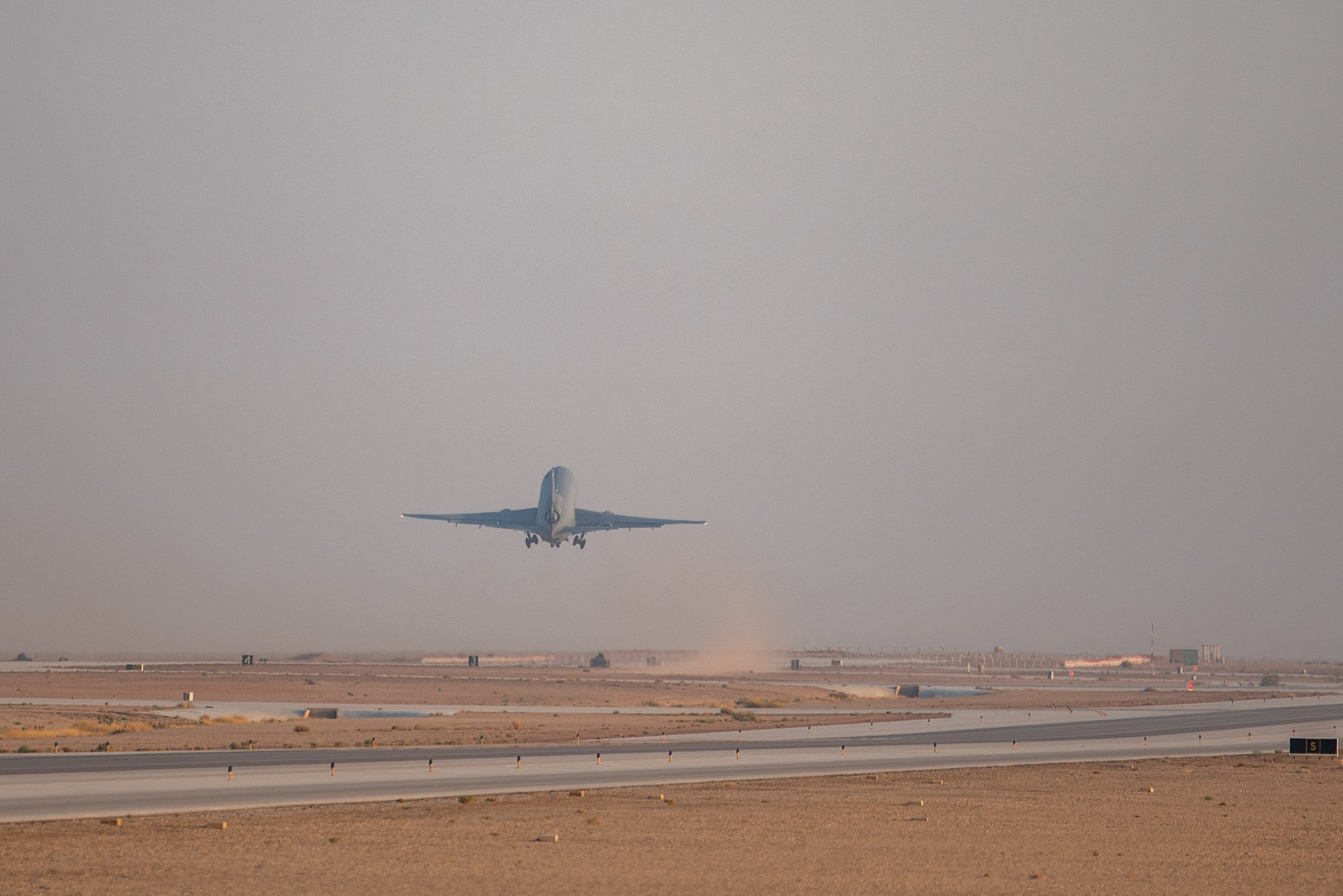 Photos published today by the Defense Visual Information Distribution Service (DVIDS) show a KC-10 departing Prince Sultan Air Base (PSAB), in Saudi Arabia, on October 5. According to accompanying captions, the departure of the Extender concluded the type’s final combat deployment at the base.
