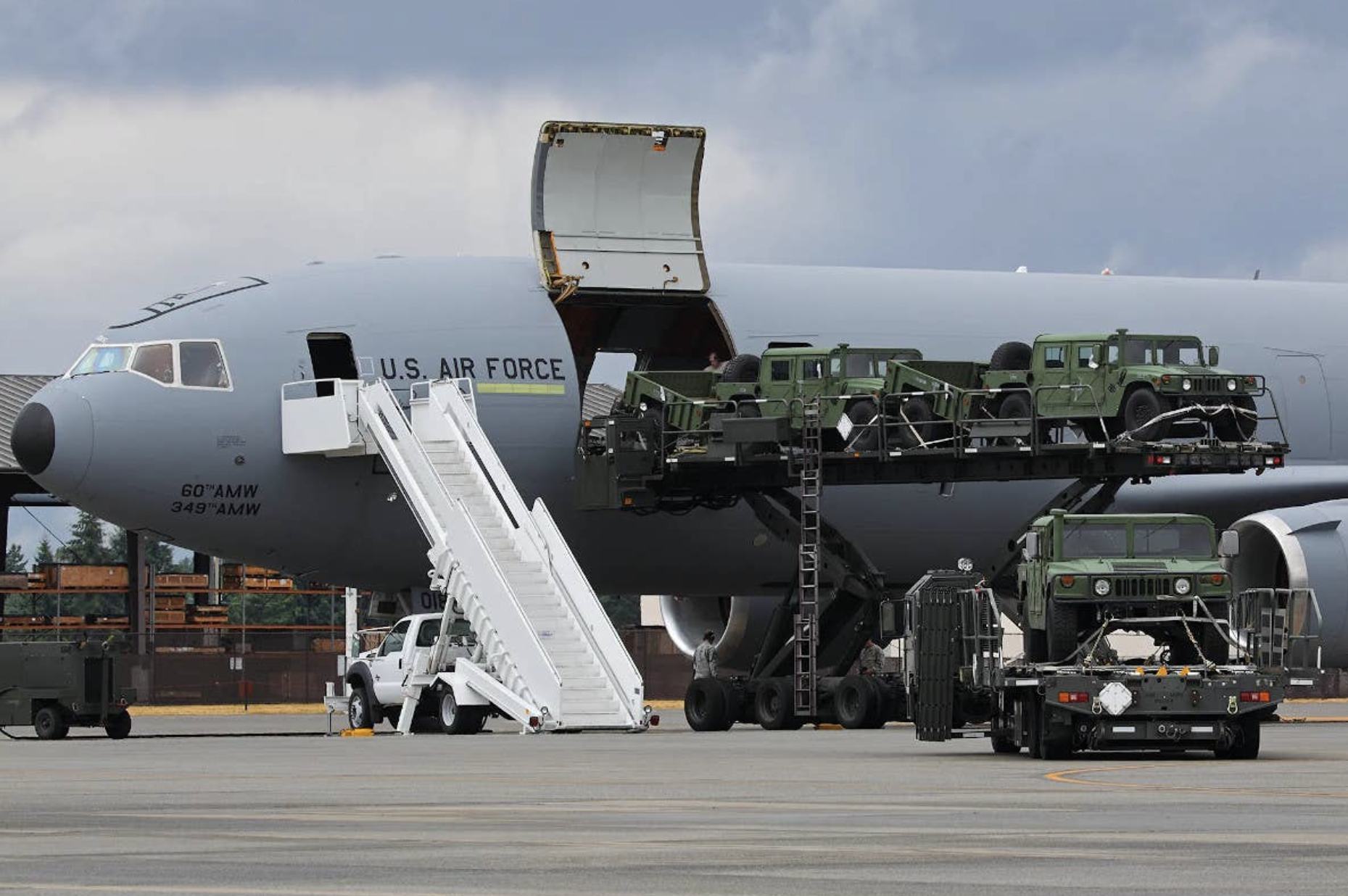 Aside from its primary refueling work, the KC-10 also has an important cargo-carrying mission, being able to carry a wide variety of cargoes, including light vehicles, such as Humvees.
