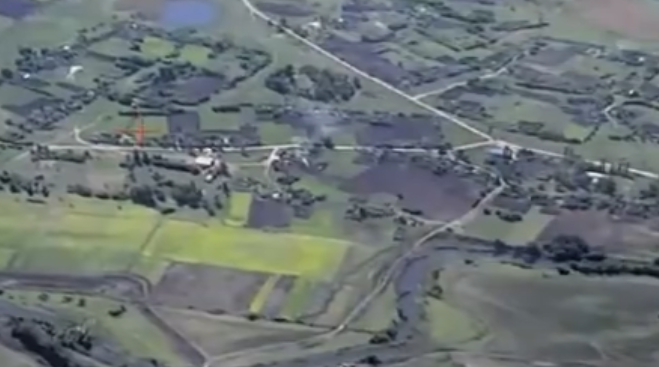 A little more than a minute later, what appears to be a dud or a spent dispenser landing in the general vicinity can be seen at the 3:50 mark.