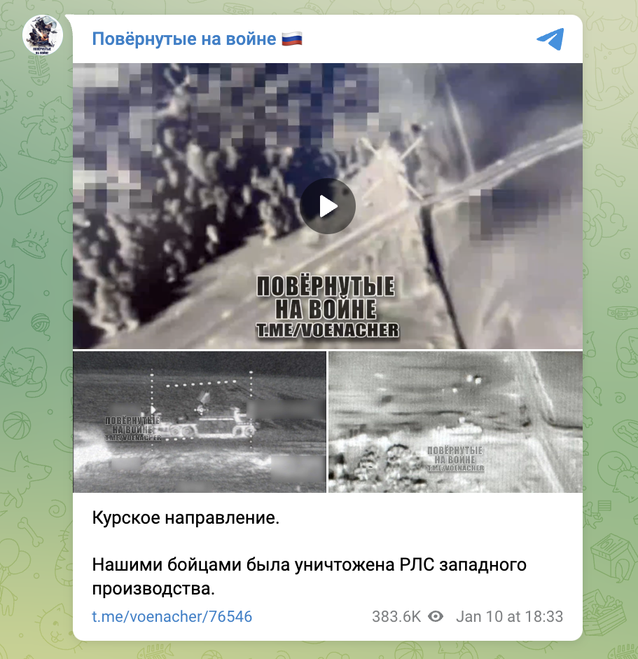 The video in question seems to have first been published on Telegram by the Russian channel Povernutye na Voynie, which described the footage as showing a Russian drone strike on “a Western-supplied air defense radar system” in Ukrainian service. The system was claimed to be destroyed and, while this cannot be confirmed, a large pall of smoke can be seen rising after the engagement.